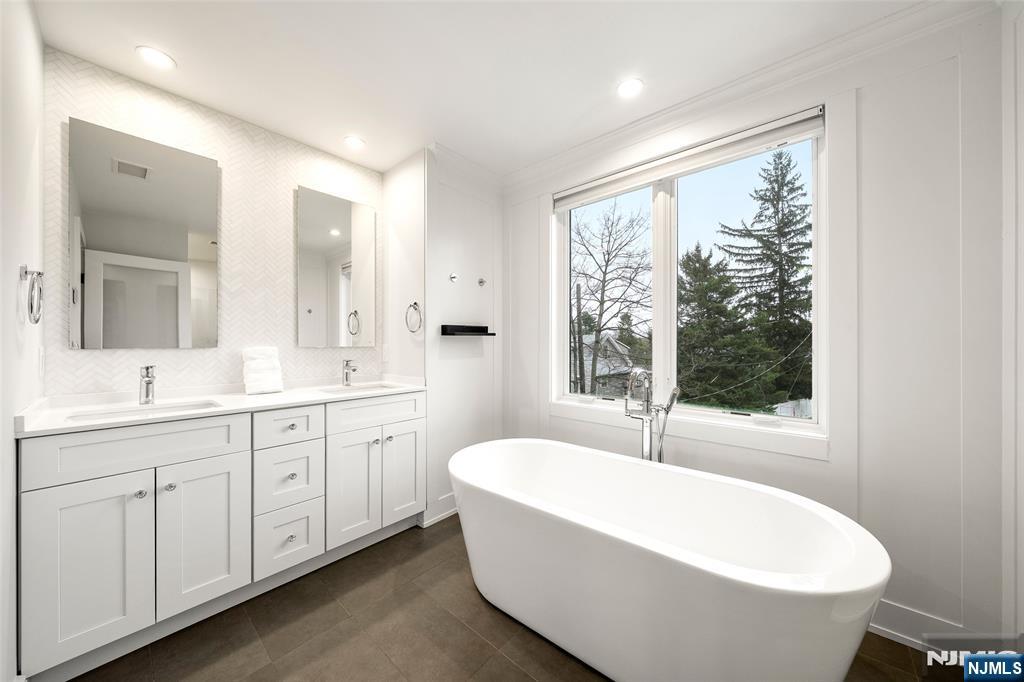 This stunning 5-bedroom Colonial, built by Lumaj Builders, is tucked away on a quiet street in highly sought-after Cresskill. The first floor features a gracious entry foyer, a sun-filled living room with a fireplace, a formal dining room, an eat-in kitchen, a powder room, and a mudroom leading to the attached 2-car garage. The second floor offers a spacious primary suite with a walk-in closet and a luxurious primary bath with radiant heated floors. This level also includes an en-suite bedroom, two additional bedrooms, and a Jack-and-Jill bathroom. Radiant heated floors in the bathrooms add an extra touch of comfort and luxury. The beautifully finished lower level is designed for both everyday living and entertaining, complete with a bedroom, full bathroom, wet bar, and recreation area. Additional highlights include a whole-house sound system, full-house generator, Nest doorbell, central vacuum, Tesla electric vehicle charger, and a brand-new dishwasher. The home has also been thoughtfully renovated with quality upgrades throughout. Outside, enjoy a beautifully private backyard with a patio, perfect for relaxing or entertaining. Located in a wonderful town with excellent schools and easy access to NYC, this exceptional home offers the perfect blend of luxury, comfort, and convenience.