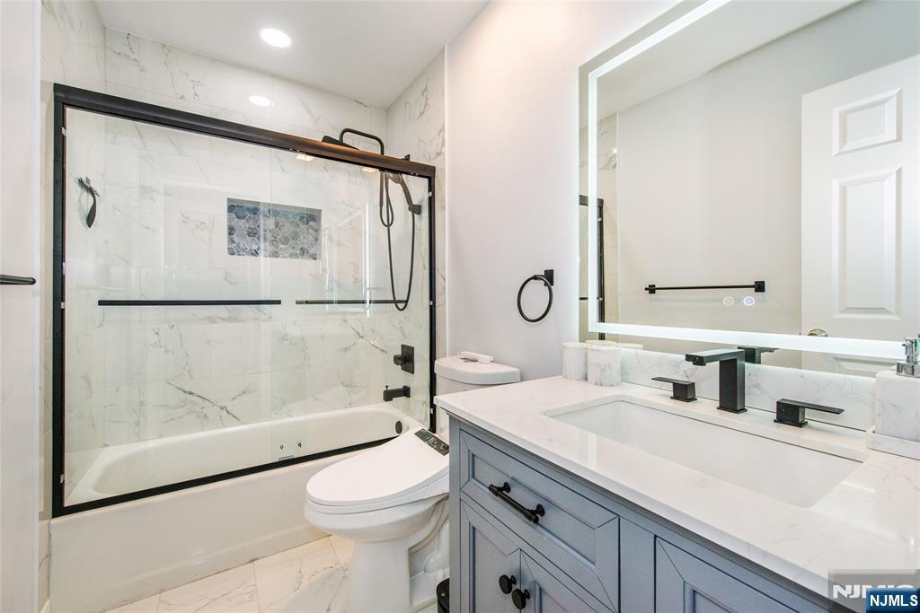 Welcome to 10 Gannett Court an exceptional end-unit in the sought-after Stonebridge community, offering rare upgrades and true turnkey living. This 3-bedroom, 2.5-bath home impresses with a sun-filled open layout, hardwood floors, recessed lighting, and seamless flow between the living and dining areas, plus a convenient first-floor powder room.The open-concept eat-in kitchen stands out with white Shaker cabinetry, quartz countertops, and a waterfall-edge island, along with stainless steel appliances, a built-in beverage fridge, and abundant storage. Sliders lead to a private patio for easy indoor-outdoor living.Upstairs, the primary suite features vaulted ceilings, a custom walk-in closet, and a spa-like bath with soaking tub, glass shower, smart toilet, and high-end finishes. Two additional bedrooms, an upgraded hall bath, and second-floor laundry complete the level.A finished basement offers flexible space for a home office, gym, or playroom. Additional highlights include a two-car garage with EV charger, smart thermostat, and upgraded smart switches.Residents enjoy walking trails, tennis and pickleball courts, and a prime location near NYC transit, major highways, and top-rated Wayne schools.