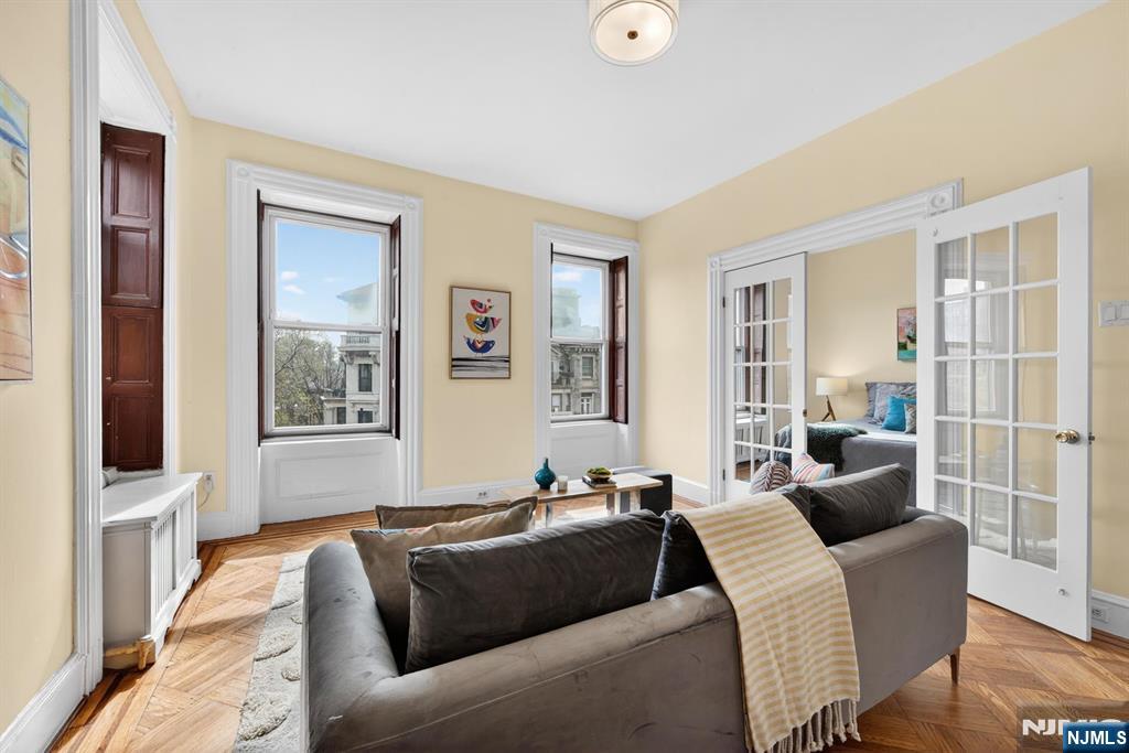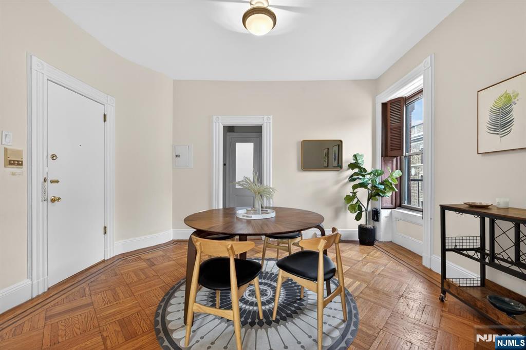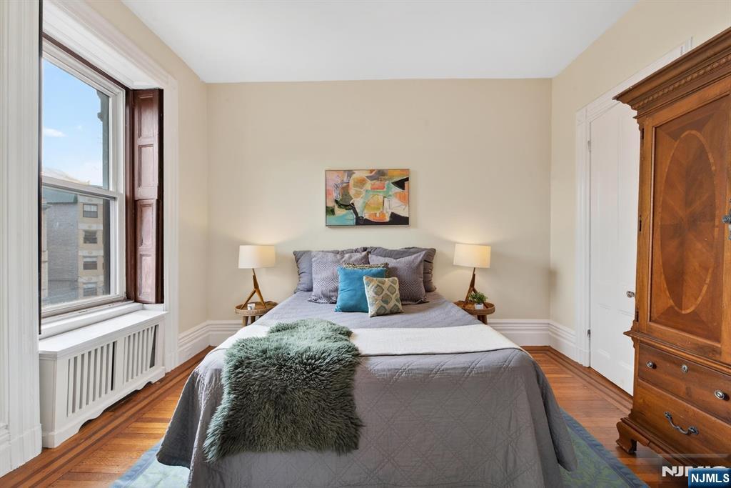 Perfectly situated on one of Hoboken’s most desirable tree-lined streets, this corner one-bedroom residence offers an exceptional setting directly across from Elysian Park, with open green vistas and partial views of the Manhattan skyline. The home is defined by high ceilings and an abundance of natural light, with its corner positioning enhancing the sense of openness throughout. Original hardwood floors bring warmth and character, while the thoughtfully proportioned layout provides both comfort and functionality. Additional conveniences include an in-unit washer and dryer, as well as a rare deeded storage unit of approximately 60 Sqft located on the same floor. The HOA includes heat and hot water, adding further value and ease of living. Ideally located just a few blocks from the ferry and moments from PATH access to Manhattan, the residence also enjoys close proximity to the waterfront, as well as Hoboken’s vibrant selection of dining and neighborhood amenities. This home presents a balanced offering of location, livability, and classic charm.