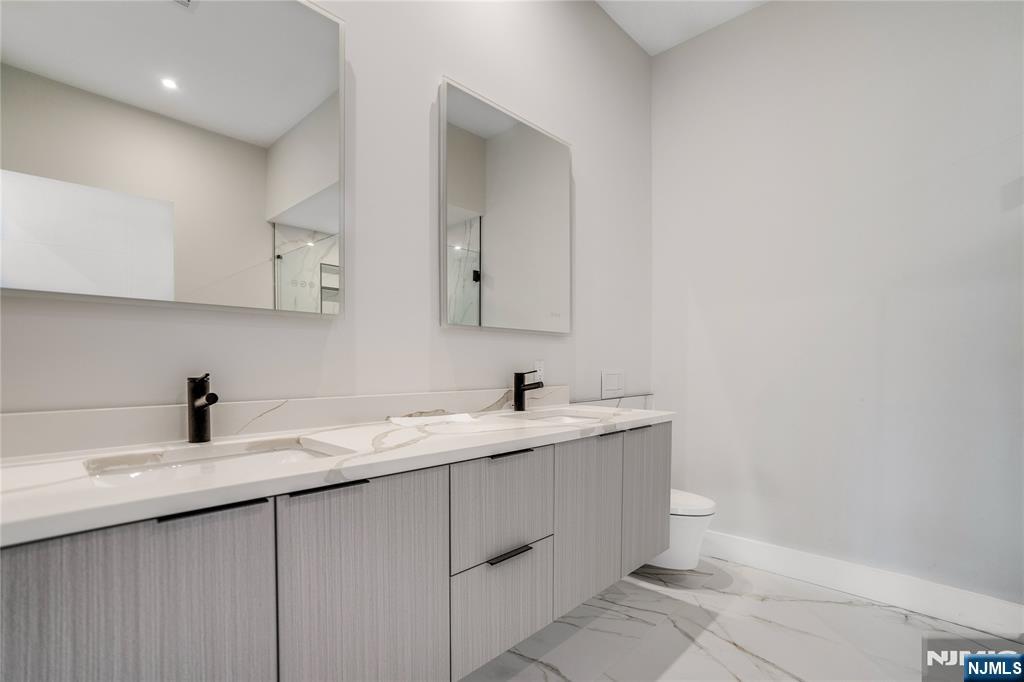 Welcome to this stunning new construction duplex in the heart of Palisades Park! This beautifully designed 3-bedroom, 3.5-bathroom home offers modern luxury living across multiple levels, featuring an open-concept layout with soaring ceilings, gleaming hardwood floors, and high-end finishes throughout. The main level boasts a spacious living room, formal dining area, and a gourmet kitchen equipped with stainless steel appliances, granite countertops, and ample cabinetry  perfect for entertaining. Step outside to your private deck and enjoy the outdoors. Upstairs, the primary suite offers a spa-like en suite bath, accompanied by two additional generously sized bedrooms and a full bath. A convenient in-unit laundry room completes the upper level. The ground floor features a versatile recreation room with a wet bar and full bath  ideal as a home office, gym, or guest suite  with direct access to the attached 2-car garage. A cozy gas fireplace adds warmth and character to the living space. Located just minutes from the George Washington Bridge, NYC express bus stops, major highways, and Palisades Park's vibrant dining and shopping scene, this home offers the perfect blend of suburban comfort and city convenience.