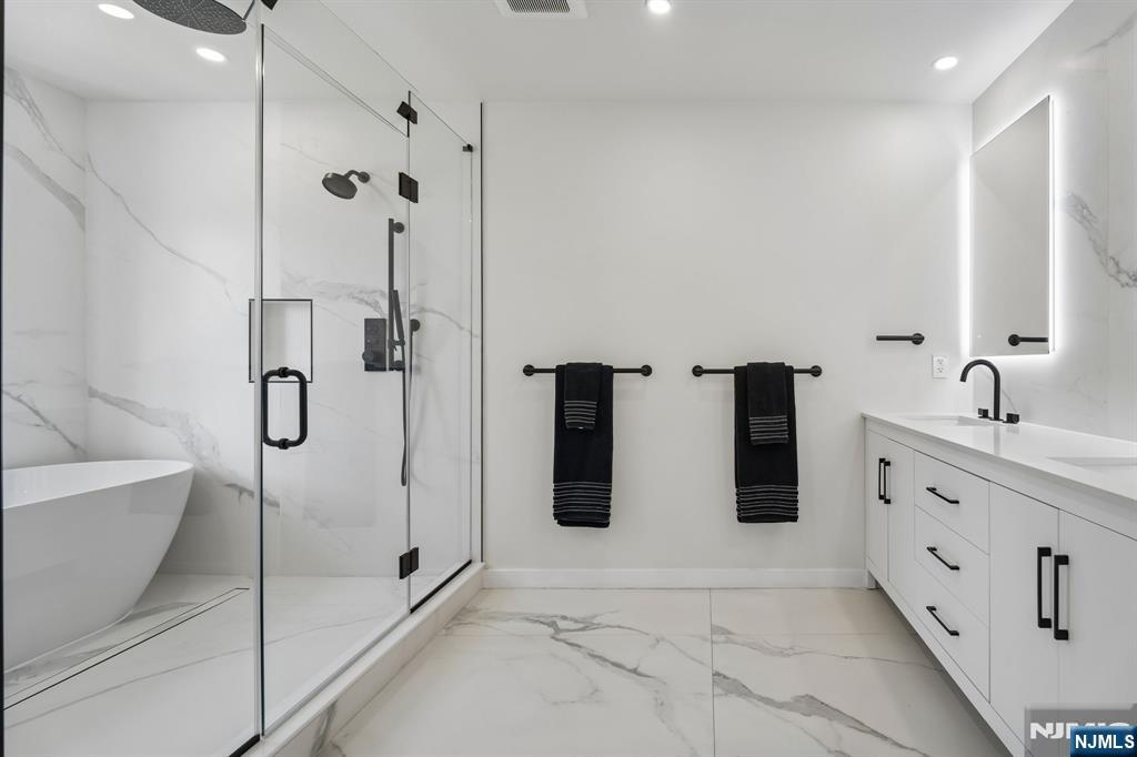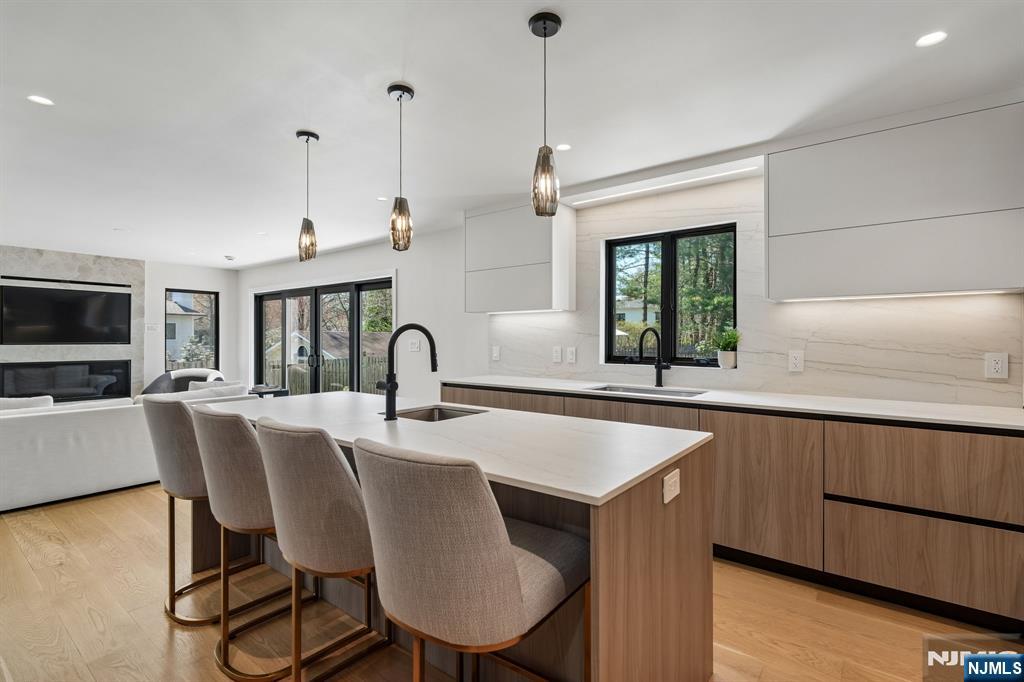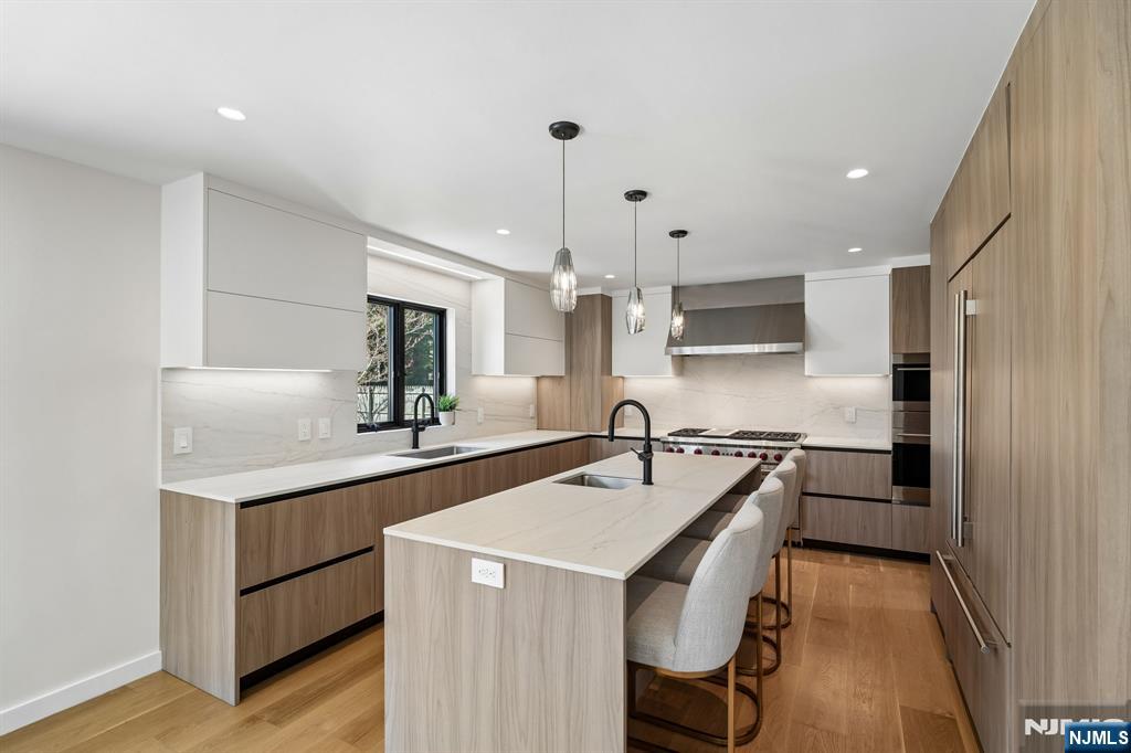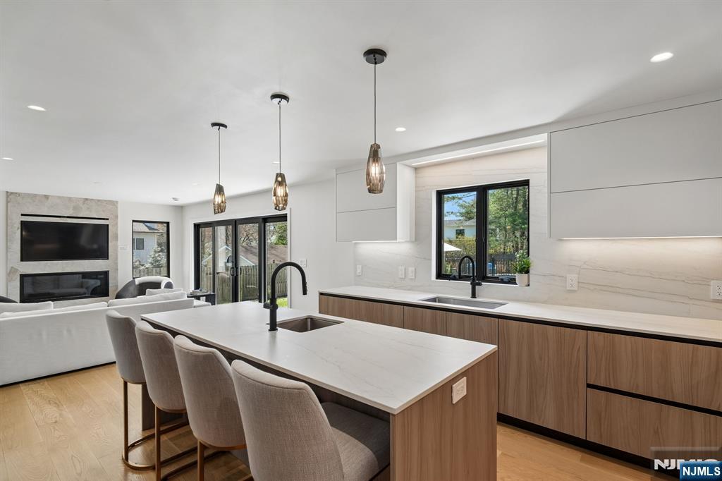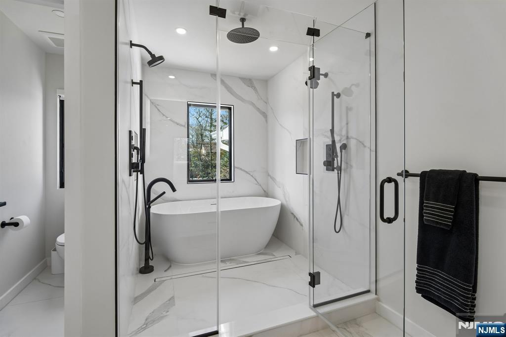 Completely renovated and expanded, this stunning 6-bedroom, 5.5-bath modern colonial is set on a quiet street on the East Hill of Demarest. Designed with a contemporary flair and an open floor plan, the main living spaces flow seamlessly from the living room and dining room to the family room and gourmet kitchen, featuring imported cabinetry and top-of-the-line appliances. The first floor also offers a bedroom suite, guest powder room, and mudroom that exits to the tandem 2-car garage. Upstairs, the luxurious primary suite is complemented by two additional bedroom suites, an additional bedroom, full bath, and laundry room. The fully finished basement adds exceptional living space with a large recreation room, gym, bedroom, and full bath. Outside, enjoy a new patio and completely fenced heated pool, creating the perfect setting for relaxation and entertaining. Conveniently located near top-rated Blue Ribbon schools, this exceptional home offers the perfect blend of style, comfort, and location.