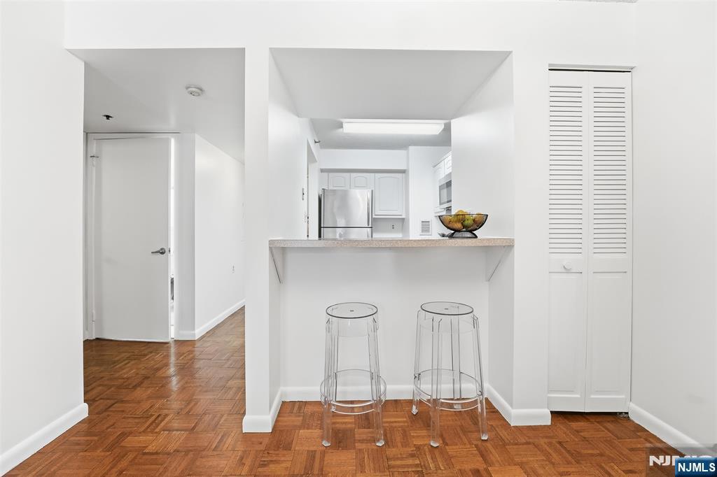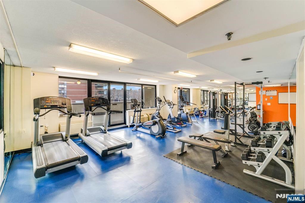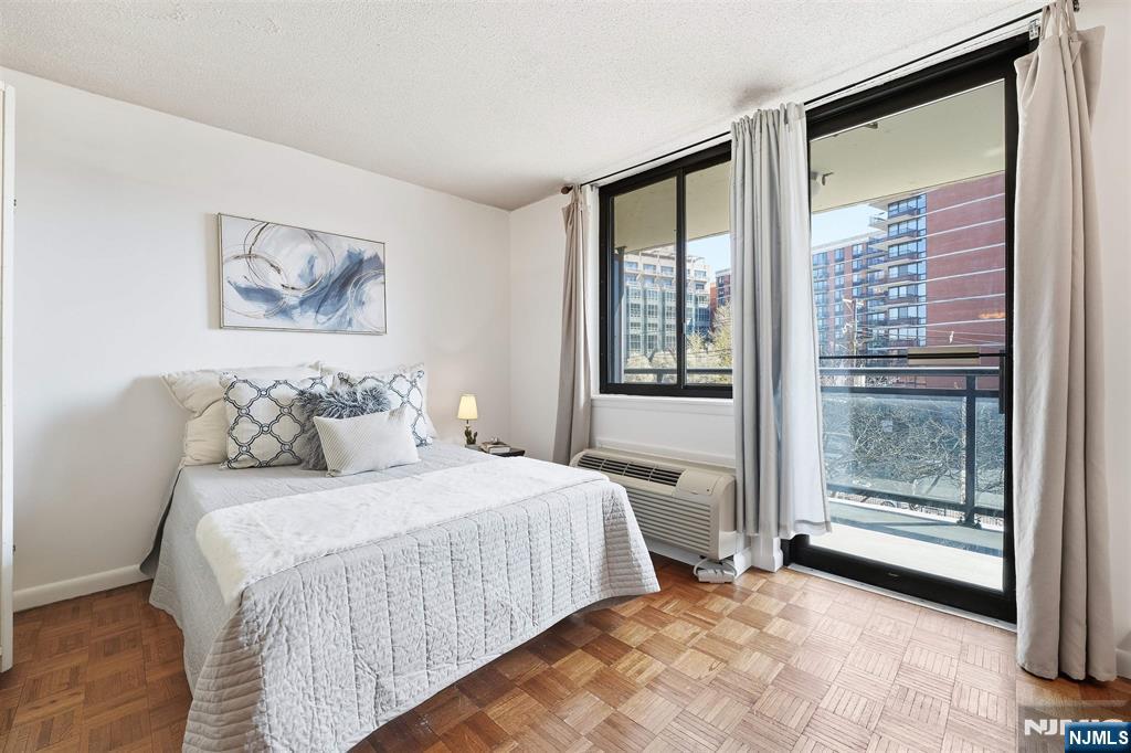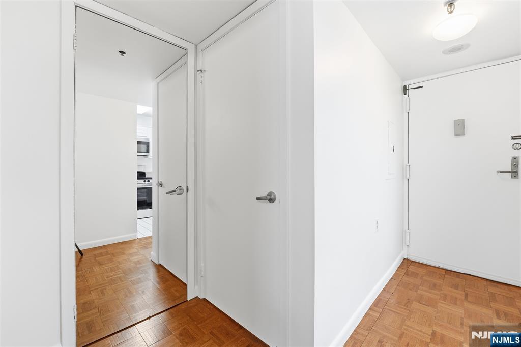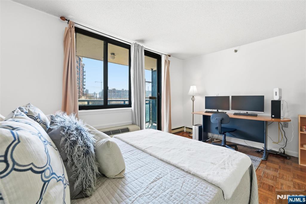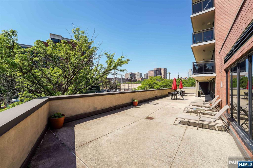 Rare, oversized studio with private terrace and garage parking in the Skyline building, a combination that almost never comes to market. This bright 557 sq ft home with southern exposure lives far beyond a typical studio, with hardwood floors throughout and large windows that flood the space with natural light. The expansive layout easily accommodates a separate sleeping area, a full living and dining area, and a work-from-home setup, all without feeling cramped. The updated kitchen features brand-new stainless steel appliances, generous cabinetry, and functional counter space, while the bathroom offers a full tub/shower. Step outside to your private terrace, perfect for morning coffee, outdoor dining, or unwinding at the end of the day, creating true indoor/outdoor living. Additional highlights include excellent closet space and room for a king-size setup. Located in the full-service Skyline building with a doorman, fitness center, concierge, laundry on every floor, and free PATH shuttle, plus the rare convenience of included valet garage parking. For buyers seeking outdoor space, parking, and full-service living in one homeâ€â€this is the one.