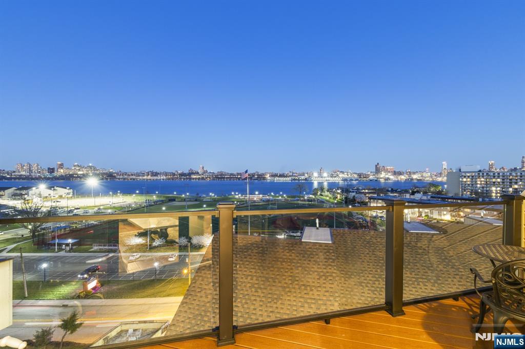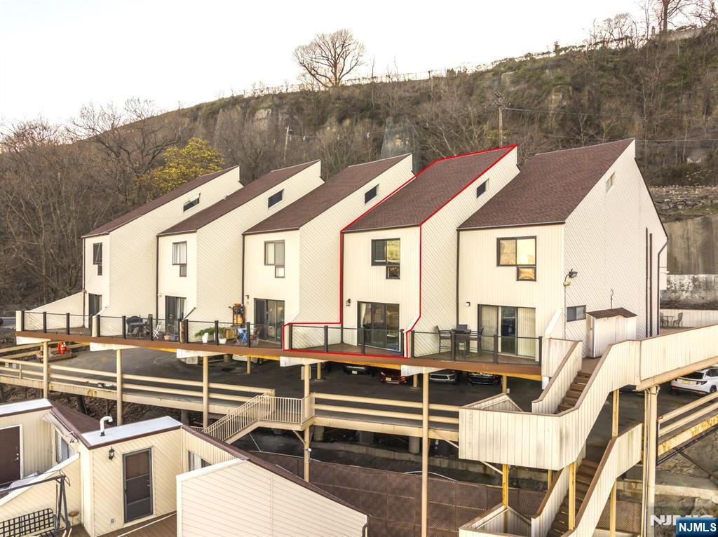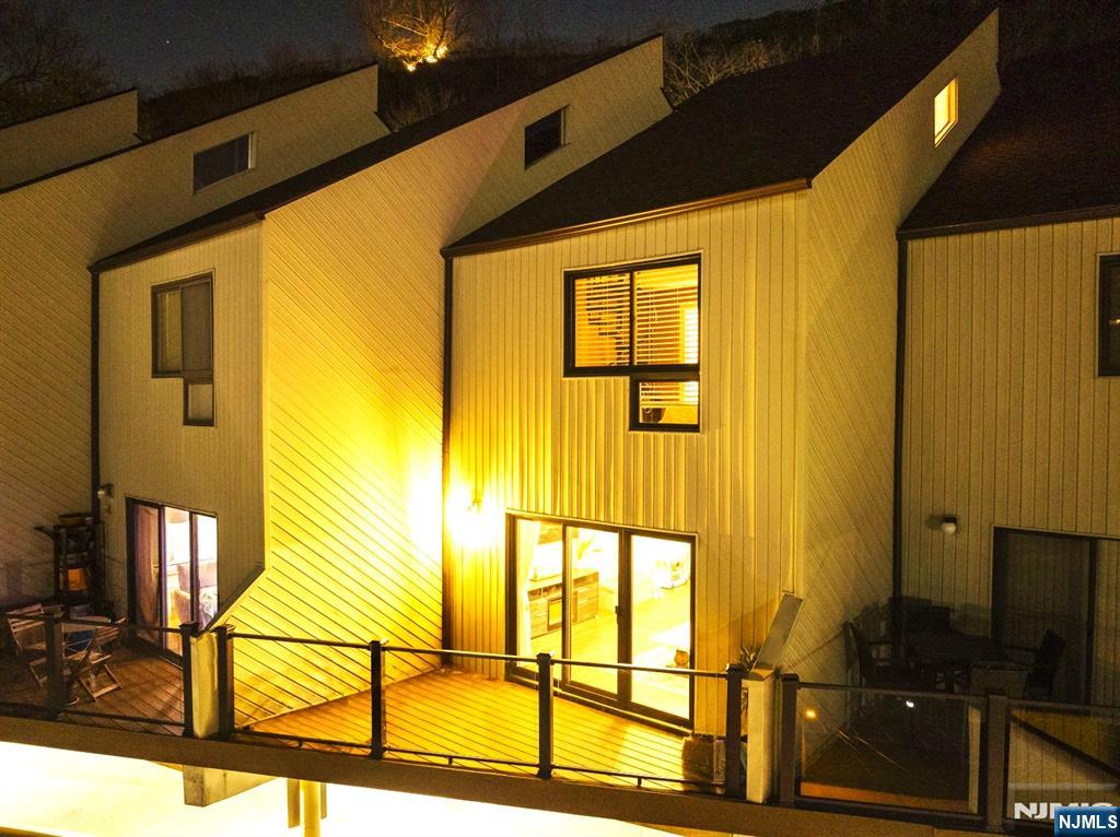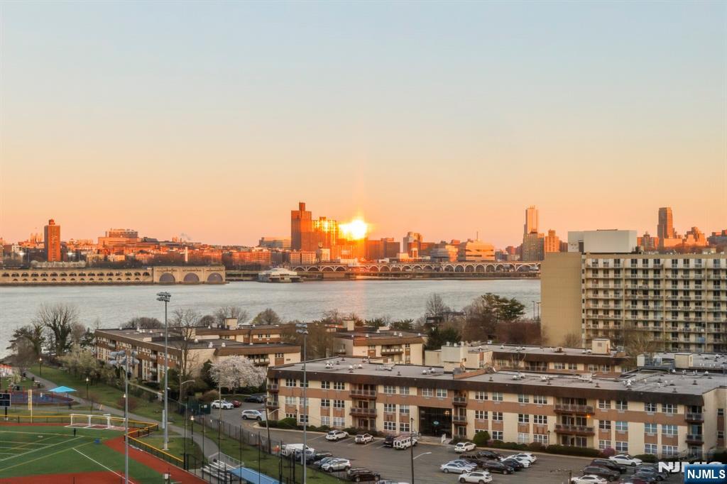 Dramatic 180-degree views from this townhouse located in desirable northern Edgewater: Located adjacent to new construction just beginning of 2+million - 3+million-dollar homes. This is mountainside vacation-like townhouse, that is directly across from New York City, with a bird's eye view of it all. The open airy floor plan w/fine finishes, makes for a cheerful home. It was recently renovated, practically down to the studs, & to the highest standards. Starting with the sleek white kitchen that has a Samsung Refrigerator, Microwave, & Designer Induction Range, with a Bosch Dishwasher. All of the cabinets were replaced w/white ones crowned w/high-end, quartz countertops, & eye-catching backsplash. Nearly all of the windows and the slider door were replaced with Anderson windows. The bathroom has two-tone subway tiles w/black hardware, for a great contrast. Other renovations include the hardwood trim work, flooring, railings replaced, tile flooring, and entirely painted. A new HVAC Heat Pump System in 2025, with a Nest System, & a "Ring" security system. The large east facing master bedroom has a great feel w/vaulted ceiling, & lots of natural light. A great place to wake up to every day with enchanting evenings on the deck with views of GW bridge, athletic field, and upper Manhattan. Edgehill is conveniently located by the Edgewater ferry, Athletic Field, bus to NY, and easy access to all major highways and the GW Bridge.