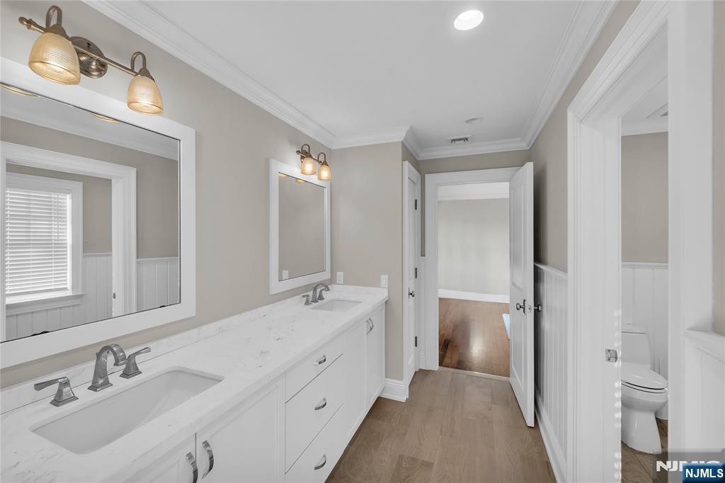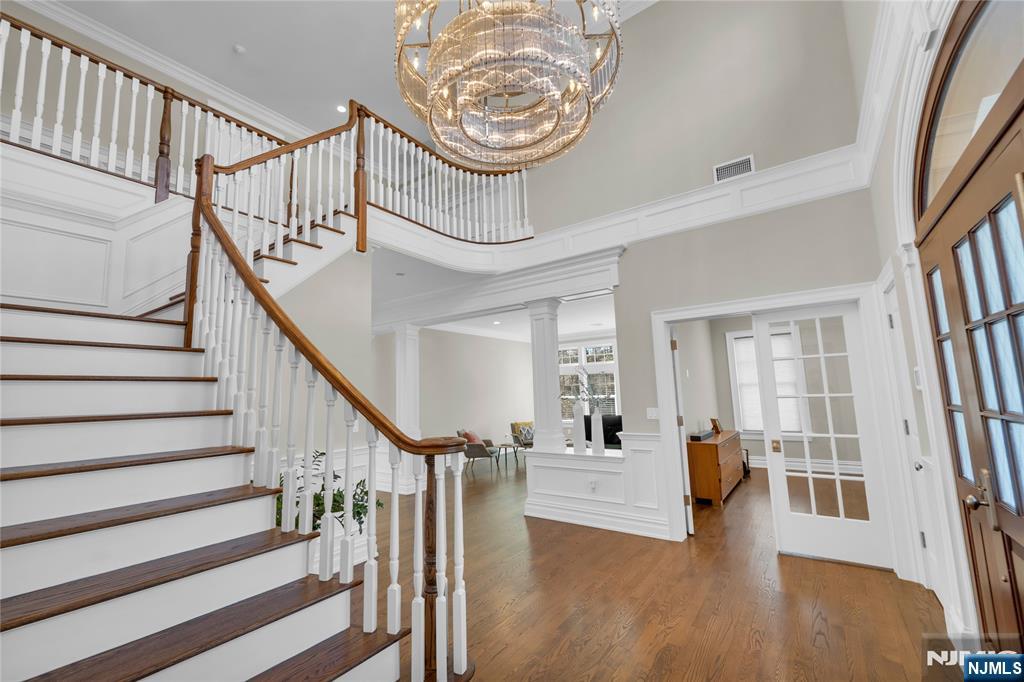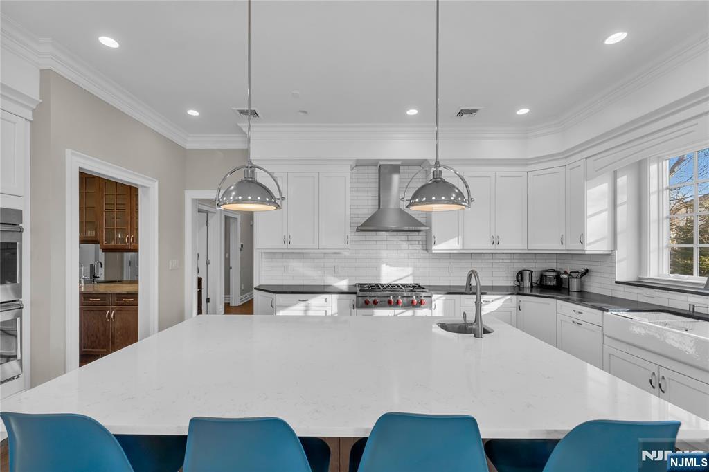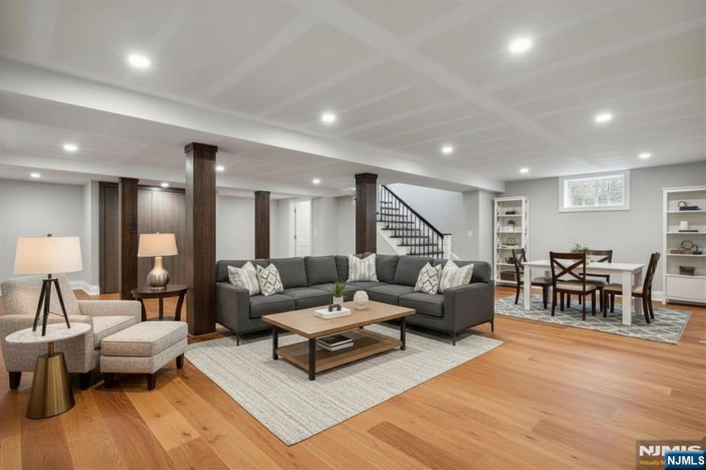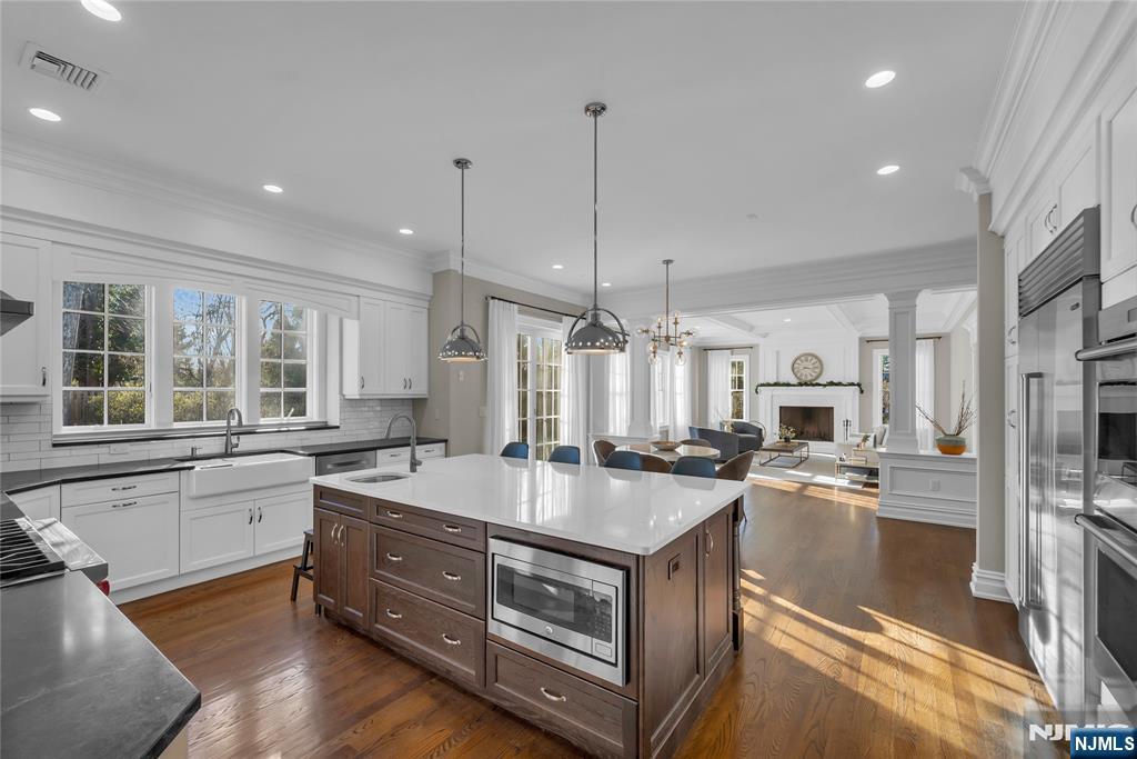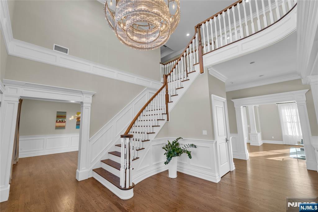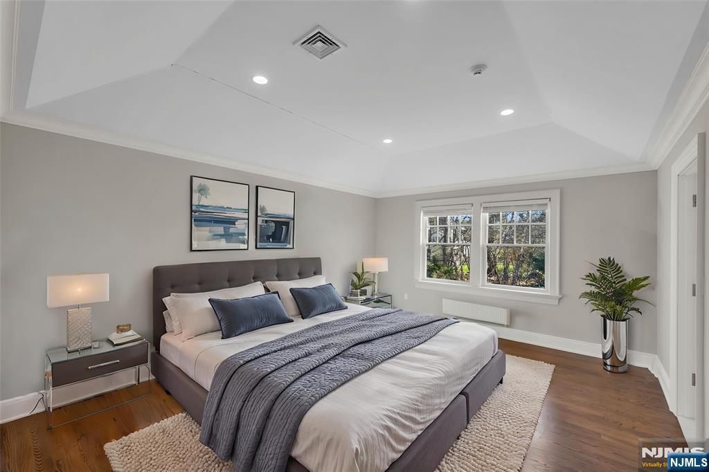 Welcome to 106 Koch Lane, a spectacular luxury residence nestled on a quiet cul-de-sac in the heart of Old Tappan, located within the town’s highly sought-after Blue Ribbon school district. This impressive custom-built home spans approximately 5,914 square feet on an expansive 0.87-acre lot, offering exceptional space, privacy, and modern design. A dramatic two-story foyer introduces an elegant layout ideal for today’s lifestyle, featuring a first-floor bedroom, private home office, formal living room, and a spacious family room with a gas fireplace. The modern eat-in kitchen features a large center island and sliding glass doors leading to the patio, creating seamless indoor-outdoor living. A custom wet bar with sink connects to the formal dining room, perfect for entertaining. The second level offers four generously sized bedrooms, a second laundry room, and a large recreation space ideal for a gym, media room, or playroom. The primary suite includes his and her walk-in closets and a beautifully appointed bath with double vanity, soaking tub, and separate shower. Thoughtful design and impressive scale create a warm yet refined living experience in one of Bergen County’s most desirable communities.