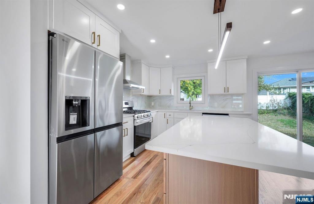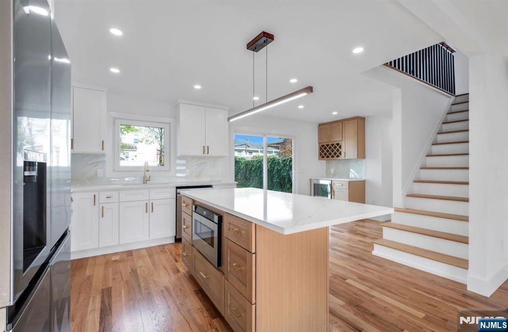 Beautiful new colonial home in the heart of Hackensack! Conveniently located near two NJ Transit train stations, the downtown bus transfer station, and Hackensack University Medical Center, offering easy access to NYC and surrounding areas. The first floor features a bright living room, eat-in kitchen with coffee bar, dining area, bedroom, and full bath. Upstairs includes a spacious primary suite with en-suite bath and walk-in closet, plus an additional bedroom and full bath. Finished basement perfect for entertainment, a one-car garage, sprinkler system and security cameras complete this move-in-ready home close to shops, restaurants, and parks.
