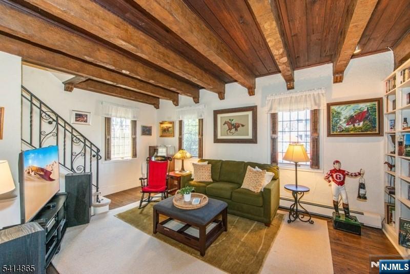 Situated on one of the prettiest streets in the Allwood section is this charming brick Tudor with amazing curb appeal! Step inside and you will immediately be impressed with the spacious living room, with a beamed ceiling and floor to ceiling custom built-in bookcases that flank the front door. Continue through the arched doorway to the formal dining room leading to the updated eat-in kitchen, with wood cabinets, granite counters and stainless steel appliances (kitchen table with matching granite top is included.) Beyond the kitchen is a raised screened porch --the perfect place to relax as you overlook the private, flat, fully fenced yard. On the second floor, you will find 3 bedrooms (2 of which have cedar closets) plus an updated full bath. The lower level offers a finished section which is the perfect rec room. In addition, there is a powder room, a utility room/storage room/laundry room plus several storage closets. Beautiful hardwood floors & leaded replacement windows throughout. Brand new furnace & electric box! One car garage also has storage space. Windsor Road is a dead end street with access to four bus routes at the end of the block, all that take the commuter directly to NYC! At the other end of the block is a neighborhood playground. This street is perfectly located just a short walk to restaurants & shops on Allwood Rd, Market St & the Styertowne shopping area. The Allwood Park & Ride and Rte 3 are both a short distance away! Great house! Great location!