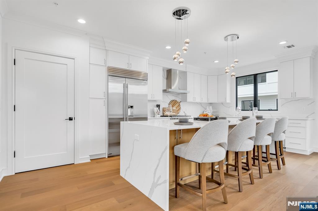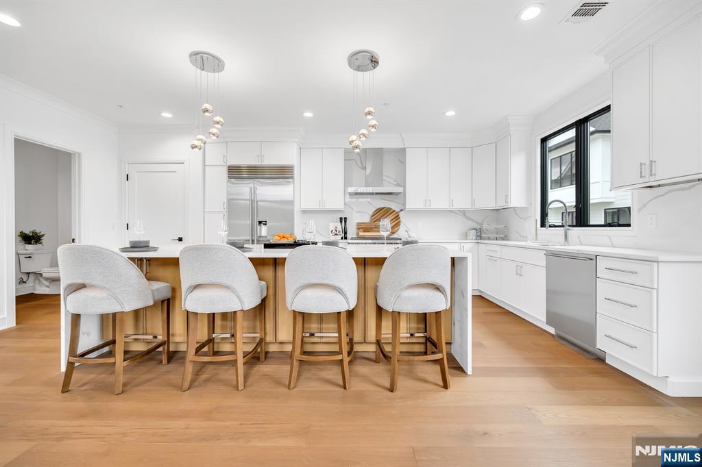 Stunning end-unit townhome at Skye Drive Estates, a highly coveted community of brand new construction built in 2024. Immaculately maintained and beautifully designed, this 3 bedroom, 2 full bathroom, 2 half bath spacious residence was built by Rock Solid Builders and offers exceptional quality throughout. The ground level features a 2-car garage, a comfortable family room, a powder room, and access to a walkout paver patio. The main level offers a gorgeous designer kitchen with a massive center island, pantry, Sub-Zero and Wolf appliances, a dining area, powder room, and a great room with a gas fireplace, custom built-ins, and designer lighting. The top level features a dreamy primary suite with a walk-in closet and spa-like bath with an oversized shower and double vanity, 2 bedrooms & a hallway full bathroom. Do not miss this beautiful townhome in the heart of Paramus, ideally located on the desirable EAST side of Paramus. Walking distance to Van Saun County Park, conveniently located to amazing shopping & restaurants. Wonderful community. LOW PARAMUS TAXES and LOW HOA! (the 3rd bedroom is a DEN as recognized by town with its own closet and door)
