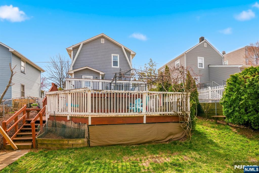 This charming sidehall colonial style home showcases 3 bedrooms/ 2 baths and is surrounded by a canopy of flourishing trees making this home a tranquil enclave. Newer kitchen with ample counter space, stainless steel appliances, & breakfast bar! Filled with an abundance of natural light, this home offers a warm and inviting ambiance and effortless flow throughout with easy access to the yard and a two tiered deck. All three bedrooms are on the second level. Finished bonus room, full bath and laundry in basement. The outdoor space is ideal for gatherings beautifully enhanced by a graceful Japanese maple tree, a blooming peach tree, and a fragrant Southern Magnolia tree creating a relaxing setting. Truly a harmonious, lovingly cared-for home! Easy commute to nyc; close to schools, dining, and shopping too! Don't miss this one!
