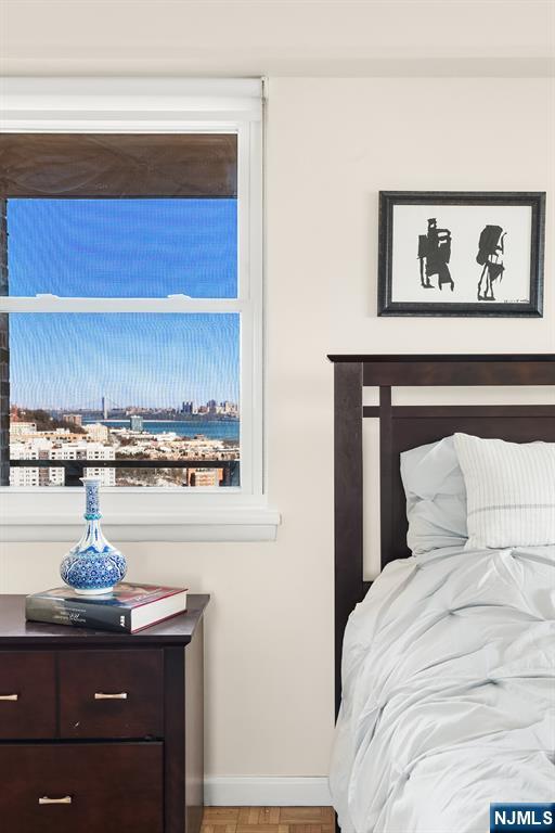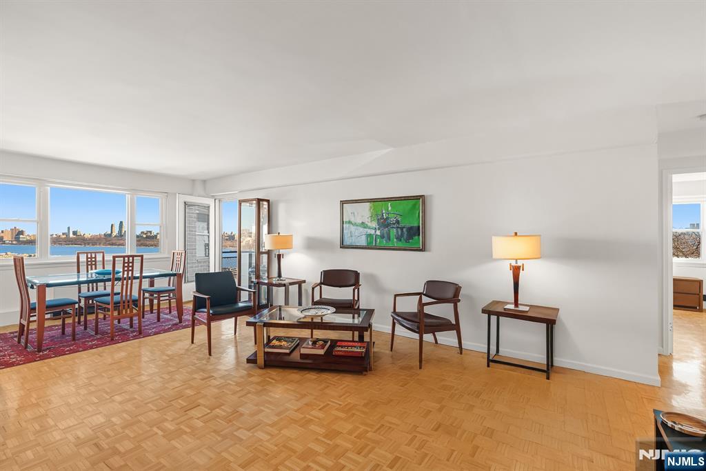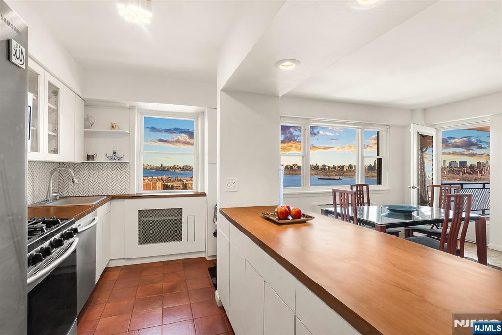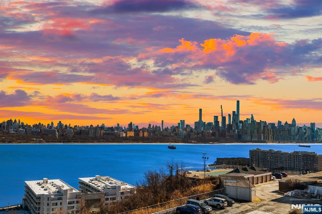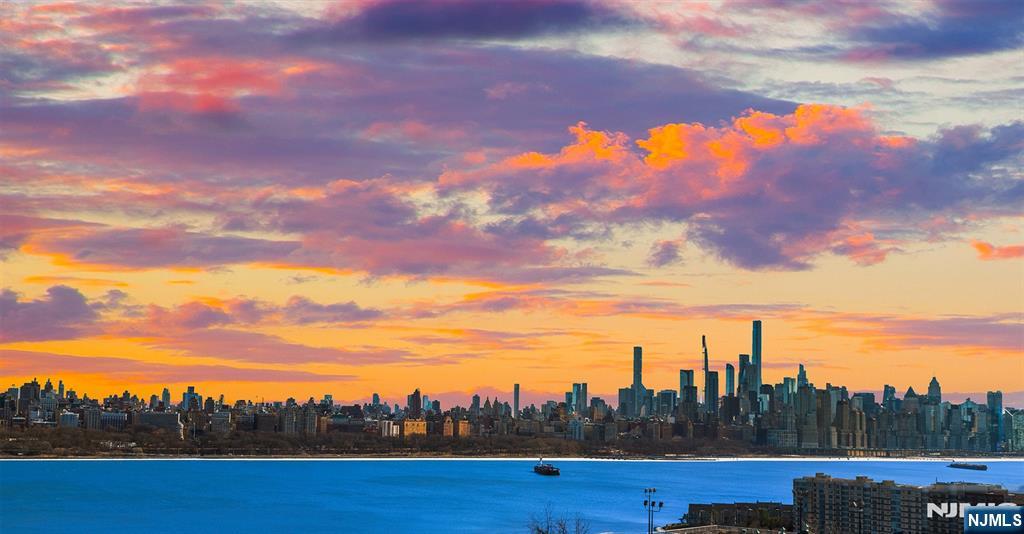 Balcony Bliss-Beauty over the River w/ sparkling NYC Skyline Views are yours in the Coveted Corner 2 Bedroom 2 Bath Condo. Step into Luxury Living with your own private Balcony. Soak up sensational NYC Skyline Views, plant a garden, dine al fresco or simply relax. This move-in-ready, rare corner layout boasts an abundance of new windows & sun light. Offering 1200+-sq. ft of Luxury living space w/ an elegant vibe. You'll experience shimmering views of countless NYC Landmarks including Iconic Empire State Building. Both cooking & hosting are a pleasure in the windowed Modern open kitchen, equipped with newer SS appliances, plenty of prep counter space & bistro seating for guests to gather. The serene & spacious primary bedroom suite offers exciting views of the NYC skyline everywhere. Find an elegant marble bath, floating vanity, large shower & spacious walk-in-closet . The East facing 2nd Bedroom offer glorious views, walls of closets for your wardrobe. Across the hall find 2nd marble full bath. Notable upgrades: New Windows, 3 New PTAC units, custom solar shades. HOA incl; ALL UTILIIES; Heat; A/C; Electric; Water; 1 Pking space, shared laundry on site, Live in-Super. A tremendous value. Seller paid capital improvements in full. NO PETS; ES/SVC pets are permitted. A Prime picturesque Parkside location surrounded by urban convenience! Only 8 miles to NYC, hassle free options are steps away! Don't Miss out! Contact Angela Cuciniello for Details 201.657-6084.