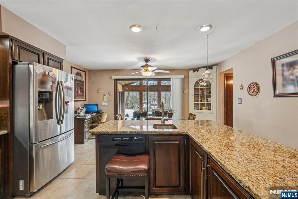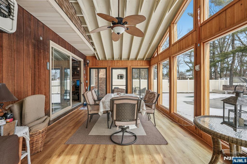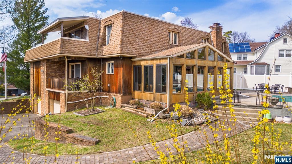 Custom Colonial on a very private cul-de-sac in one of the most desirable locations in Woodland Park. Welcome home! Features include: A stunning open floor plan with an impressive 2 entry foyer and a formal living room with vaulted ceilings, beautiful stone fireplace all opens to a formal dining room & a large family room with a fireplace. Large kitchen with granite counter tops, stainless-steel appliances, center island & breakfast room. Sliding glass doors lead out to the sun-filled four-season room with walls of windows and cathedral ceilings, perfect for entertaining or relaxing while enjoying views of the expansive yard. Conveniently located first floor powder room & laundry room. Second floor includes: primary suite with walk-in closets & generous bathroom. Additional 2 spacious bedrooms with full shared bathroom. On the lower level there is plenty of storage and finished areas. Additional highlights include: circular driveway with impressive covered front porch, sizable 2 car attached garage, outdoor balconies, quality construction with brick exterior, recessed lighting, well maintained, lots of natural light, contemporary styling, & hardwood floors. Enjoy the outdoors- resort style living, wonderful private backyard with patios, beautiful views, and a saltwater pool with a new liner - your own private retreat. Conveniently located minutes from major highways, shopping, restaurants, major highways, NJ Transit public transportation, community parks, & New York City.