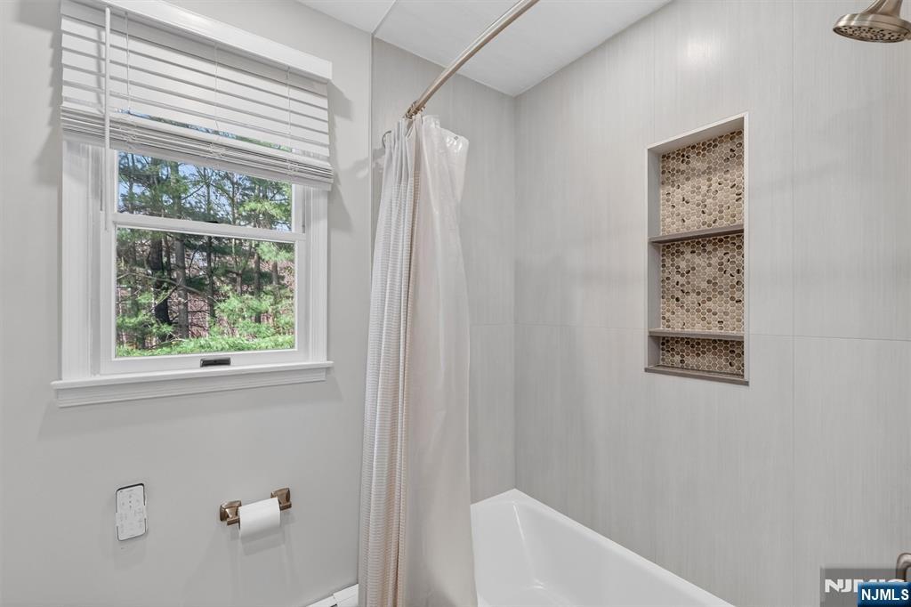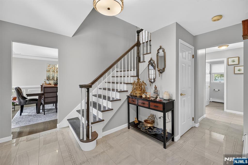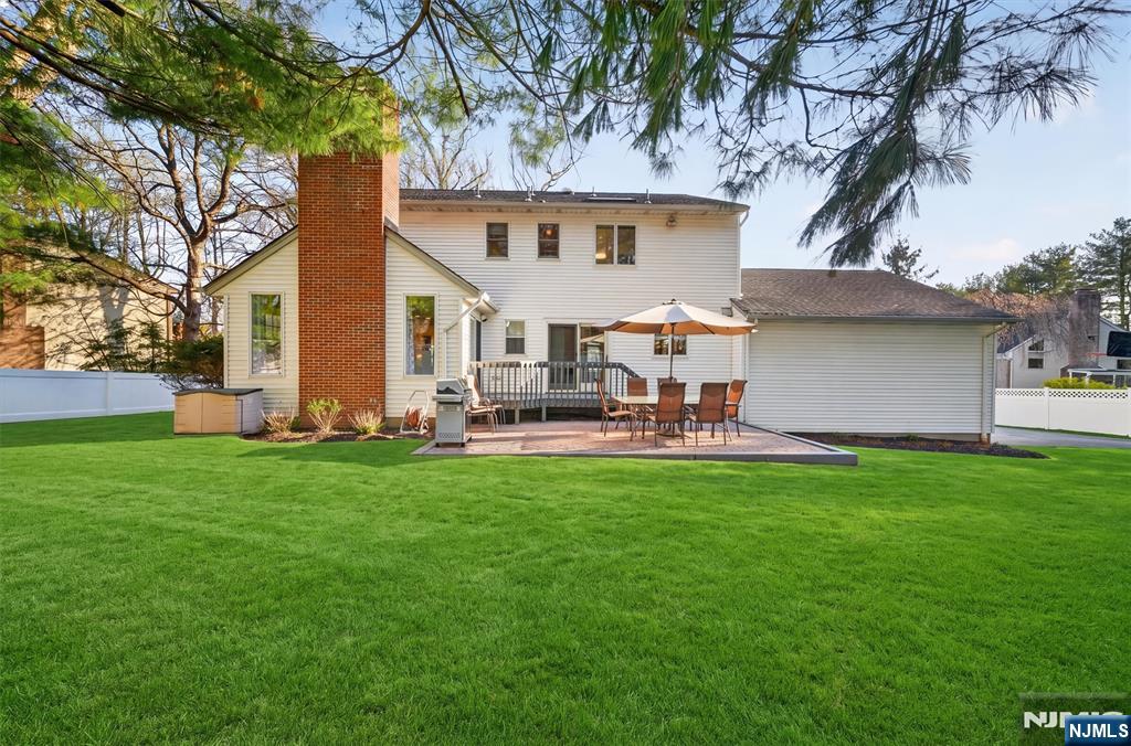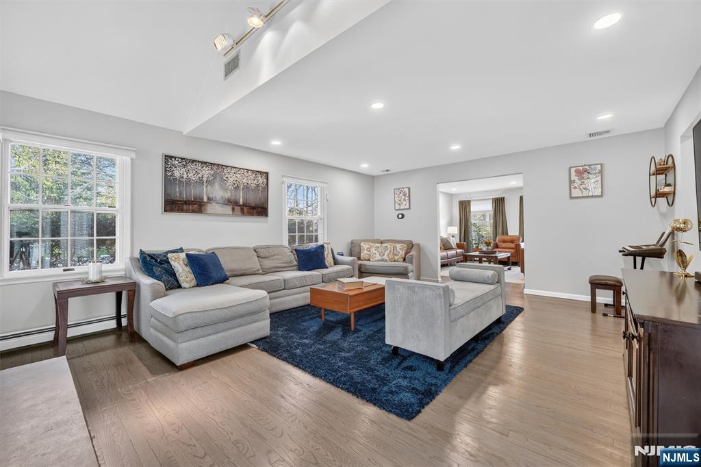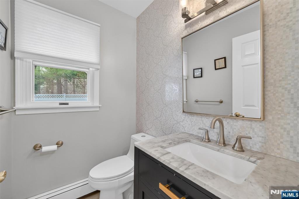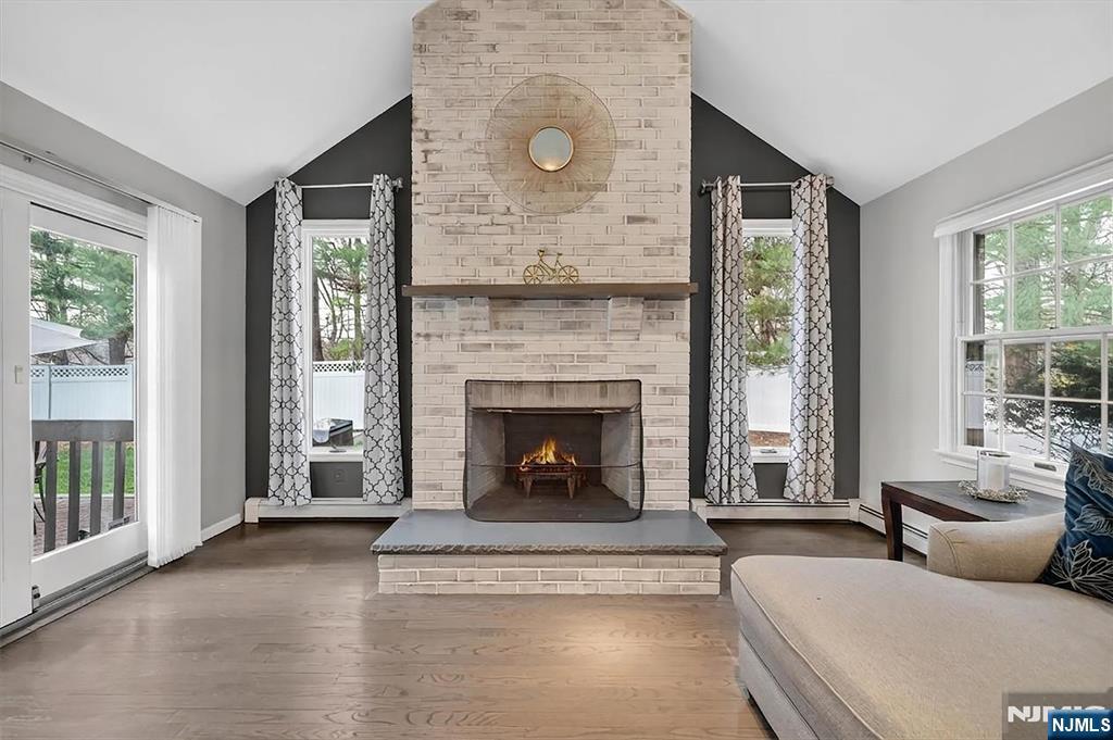 Tucked away on a private, 14-home cul-de-sac, this timeless Colonial balances neighborhood warmth with uncompromising exclusivity. Set gracefully above the street, the classic brick facade establishes a tone of enduring elegance. Inside, a center-hall foyer welcomes you. The formal dining room features beautiful millwork, while the sun-drenched living room flows effortlessly into the remarkable family room. Destined for gatherings, this space commands attention with a dramatic cathedral ceiling and a floor-to-ceiling brick fireplace. The reimagined chef’s kitchen balances luxury with everyday function. Crisp white cabinetry, quartz counters, and a center island create a luminous workspace. A hidden pantry keeps essentials tucked away, while a charming banquette offers the perfect spot for morning coffee. Glass sliders open to the rear patio for effortless entertaining. A chic powder room and laundry complete the main floor. Upstairs, the front-to-back primary suite is a true sanctuary, featuring a dedicated workspace, walk-in closet, and a spa-inspired bath with a vaulted skylit ceiling, dual vanity, soaking tub, and shower. Three additional bedrooms share a beautifully remodeled hall bath. The finished lower level offers versatile space for a media room and gym, plus expansive storage. Enjoy Mahwah's top-tier schools, exceptional recreation, and seamless NYC commuting via bus or train. Welcome to elevated, effortless living.