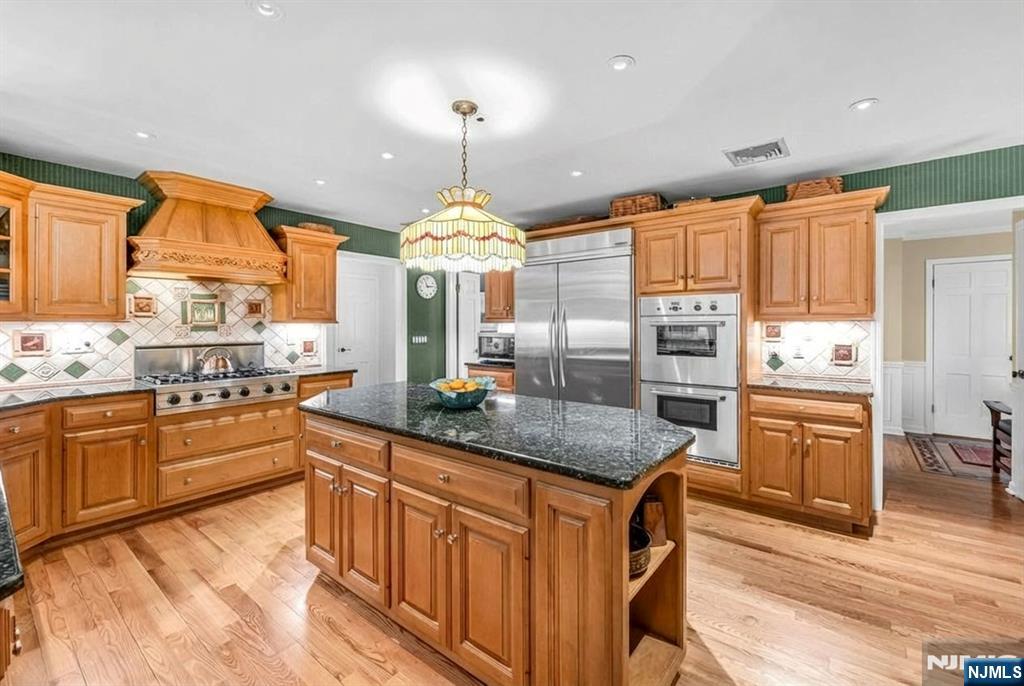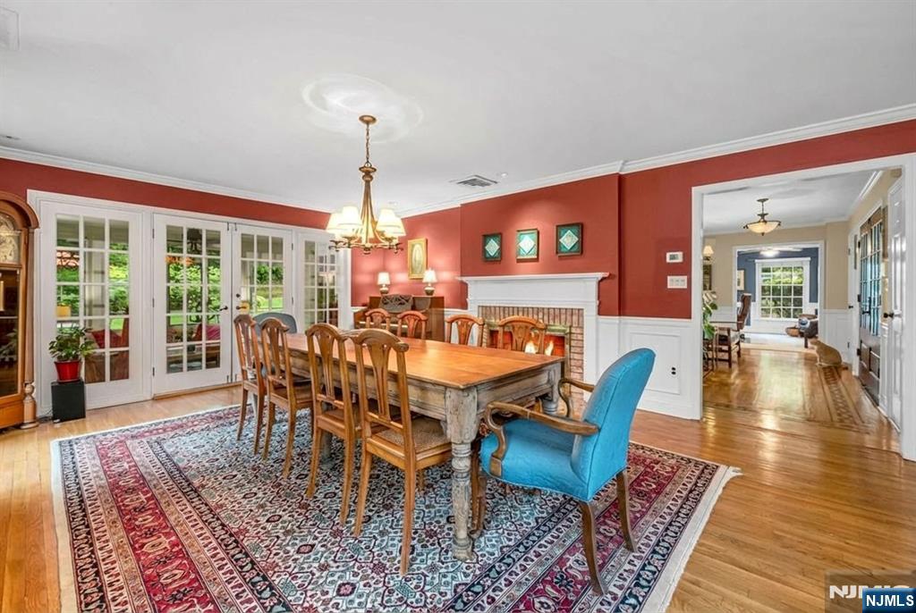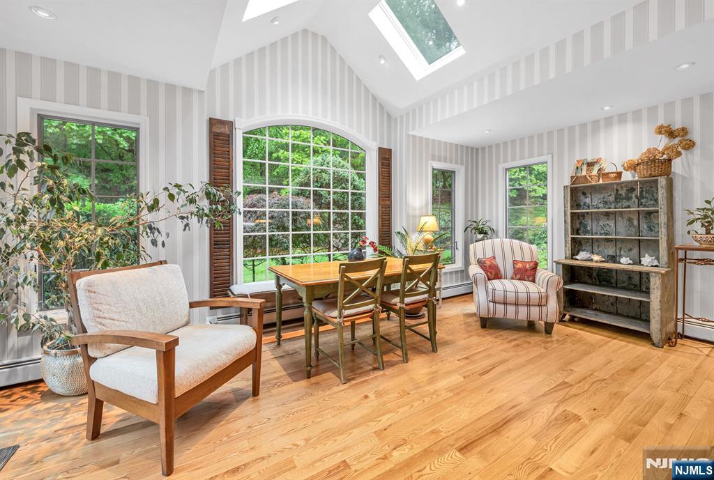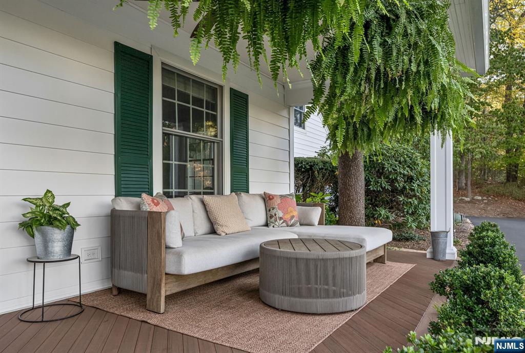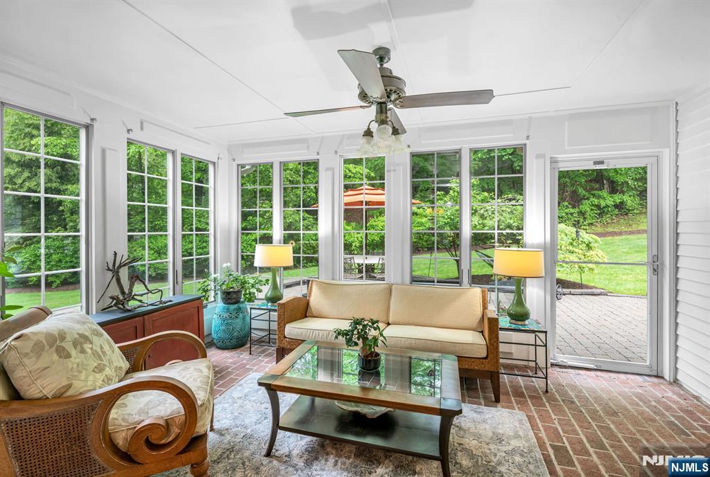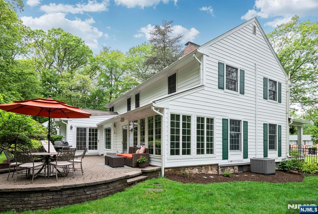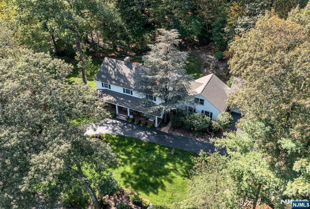 Discover tranquility, timeless charm, and exceptional privacy in this beautifully expanded colonial, nestled on a rare triple cul-de-sac in the sought-after North Gate section. Before stepping inside, enjoy the covered front porch, ideally situated to overlook the lush, mature landscaping that frames the circular driveway. Inside, the welcoming foyer is flanked by an office and a formal dining room w/fireplace. Delight in the chef’s kitchen, boasting custom rock maple Salerno cabinetry, high-end appliances, center island, wet bar, peninsula, and soaring vaulted ceiling, perfect for culinary creativity and casual gatherings. Or, unwind by the gas fireplace in the inviting den or transition effortlessly into the sun-drenched 3-season sunroom, accessible from both the dining rm and den-ideal for seamless indoor-outdoor living and entertaining. There's more! A spacious Gr Rm off the kitchen + a full bath, powder room/laundry, and access to the grade level 3-car attached garage. Upstairs, the primary suite offers a walk-in closet and renovated bath. Three additional bedrooms share a thoughtfully designed Jack-and-Jill bathroom. 2nd staircase off the Gr Rm leads to a flex fifth br/bonus space- perfect for guests. The finished Lower Level offers even more living space and storage. Upgrades inc security system, generator, irrigation, new roof, newer A/C system and more. Impeccably maintained and move-in ready. Close to ITC, Market Basket, and everything Franklin Lakes has to offer.
