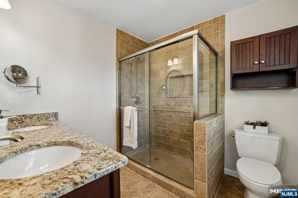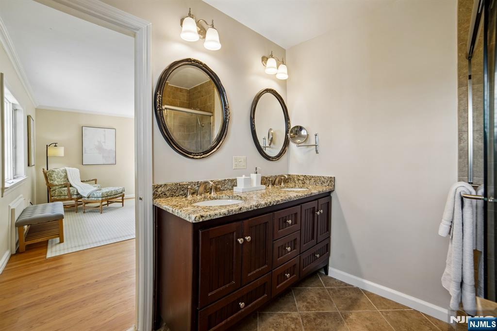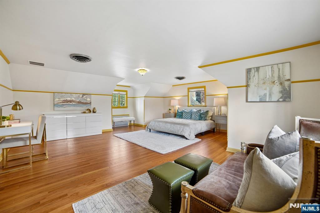 Welcome to an extraordinary, sun-drenched raised ranch style residence nestled in the highly coveted Montclair Heights neighborhood of Clifton. Set on nearly half an acre of beautifully landscaped grounds, this expansive home offers the perfect blend of luxury, comfort, and convenience, just 15 miles from NYC. From the moment you arrive, the home's striking curb appeal hints at the elegance within. Step inside to discover gleaming hardwood floors, oversized windows filled with natural light, and an inviting open-concept kitchen designed for both everyday living and effortless entertaining. The thoughtfully designed layout features two serene ensuite bedrooms on the main level, while the upper floor boasts two exceptionally spacious bedrooms, offering flexibility and privacy. Tastefully renovated bathrooms add modern sophistication. The fully finished basement elevates the home even further, complete with a kitchenette and full bath, ideal for guests or recreation. Outdoors, a lush and private backyard oasis with a custom patio awaits, perfect for relaxing or hosting gatherings in a tranquil setting. Ideally located near premier shopping and dining, and just moments from the Midtown Direct train and vibrant Upper Montclair. The home also offers access to excellent schools. A rare offering that seamlessly combines space, style, and location, this is the one you have been waiting for.