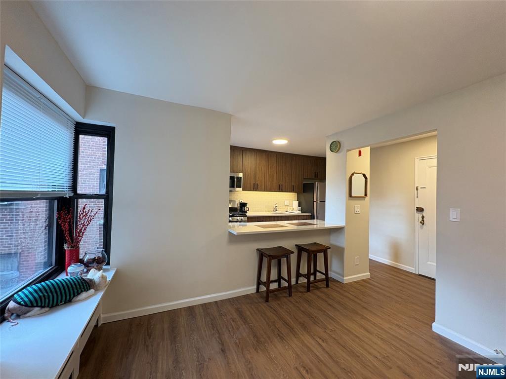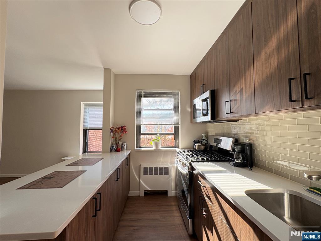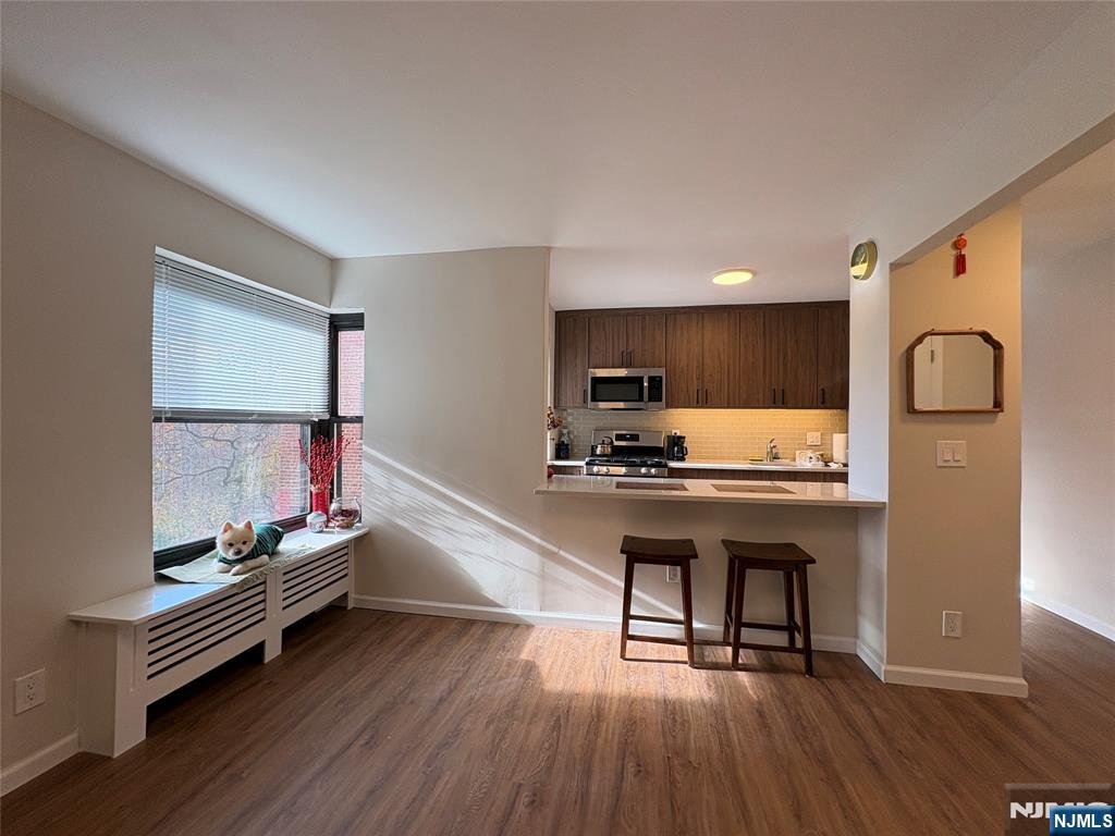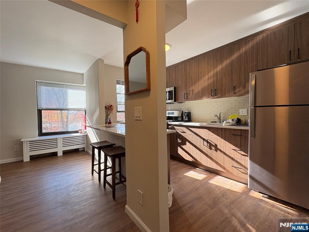 CASH buyers/investors welcome! (Yes, you can buy and lease out immediately.) Total renovation with brand-new everything, thoughtful professional design, and practical day-to-day usability. High-quality finishes and an open-concept layout give the home a fresh, clean, modern feel, with stainless steel appliances, seven ceiling lights, an enlarged closet, tons of kitchen cabinets, extra outlets, custom windowsills, and LVT flooring throughout, nothing left undone. This sunny, bright, south-facing 3rd-floor unit overlooks a serene private garden and sits in the well-loved Hudson Terrace co-op, adjacent to Coltsville Park and close to NJ Transit stops to NYC. TOTAL MONTHLY MAINTENANCE: $640.70 (includes taxes, heat, hot water, and one outdoor parking spot); Owner holds NJ real estate license.