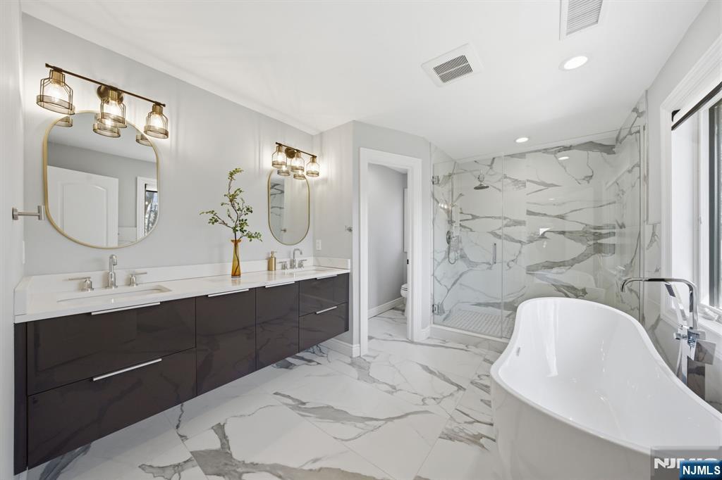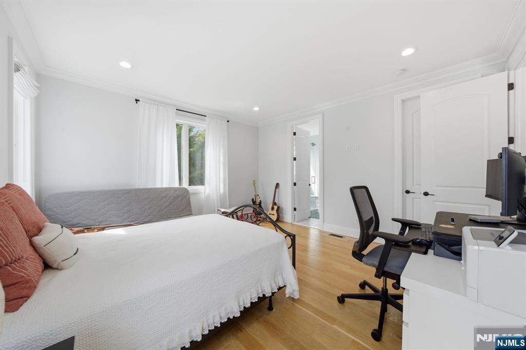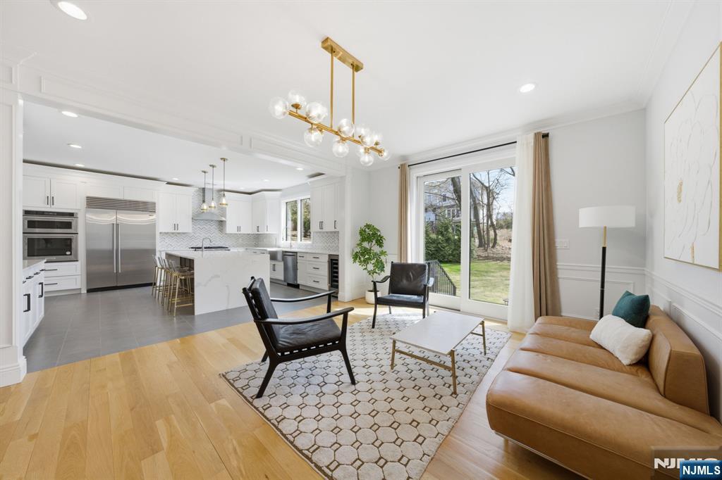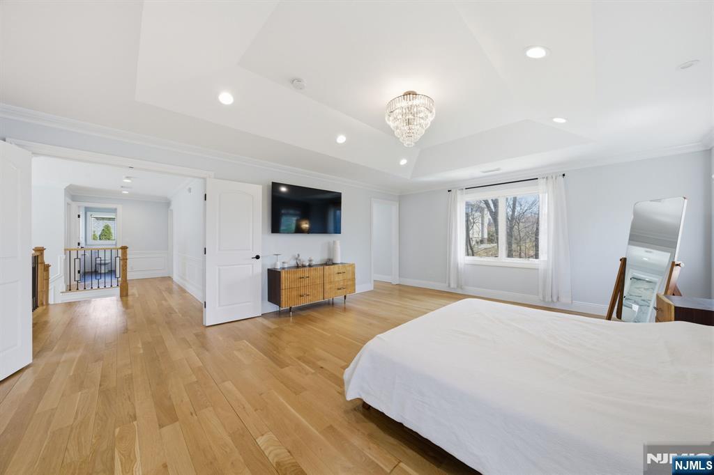 Experience the pinnacle of luxury in this 2020-built Modern Colonial, perfectly situated in the prestigious enclave of Alpine. Spanning approximately 3,307 sq. ft. of masterfully designed living space, the journey begins with a grand two-story foyer illuminated by a stunning designer chandelier and abundant natural light. The main level is an entertainer’s dream, featuring a formal living room anchored by a custom-designed fireplace and an elegant formal dining room. The heart of the home is the bright, open-concept chef’s kitchen, outfitted with top-tier Commercial grade appliances and sliding doors that lead to an open private yard. A rare first-floor bonus suite with a full bath offers ultimate versatility for guests or a home office. Retreat to the second floor primary master bedroom boasting dual walk-in closets and a spa-inspired bath with a soaking tub and rainfall shower. In addtion to one oversized bedroom, one standard size bedroom, full bath, and a laundry room complete this level. The expansive walk-out lower level adds exceptional value, featuring a large recreation room, three walk-in closets, dedicated gym area, and full bath. Meticulous details abound: rich oak flooring, crisp crown molding, a two-car garage, and integrated security. This residence offers a seamless transition into the North Jersey/New York region's most coveted lifestyle. Welcome home where comfort meets style.