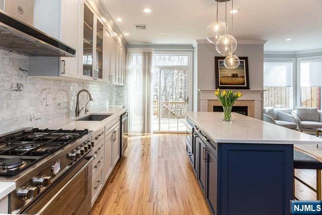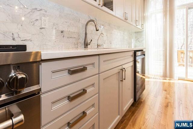 Renovated with luxury line of appliances, fixture and more. 3700 sqft. You have to come and look! Excellent School district and luxurious townhouse in Northern Valley's prime Old Tappan community. Close to NYC transportation. Bright open floor plan! Large living room and dining area featuring high ceilings. Updated kitchen with quartz counter tops, stainless steel appliances, walk-in pantry and huge island. This opens to family room with fireplace. Sliding doors to spacious deck that backs up to woods great for entertaining! Second level offers expansive master suite with 2 walk-in closets and large bath featuring granite counter tops, jetted tub and separate shower. Two additional spacious bedrooms, updated full bath and lots of closets space complete this level. Fully finished lower level offers additional family/bonus room, laundry room, full bath, garage entry, and sliding doors to private pave patio. 2-car attached garage. Check virtual tour! Move-in fee $500(no refundable)