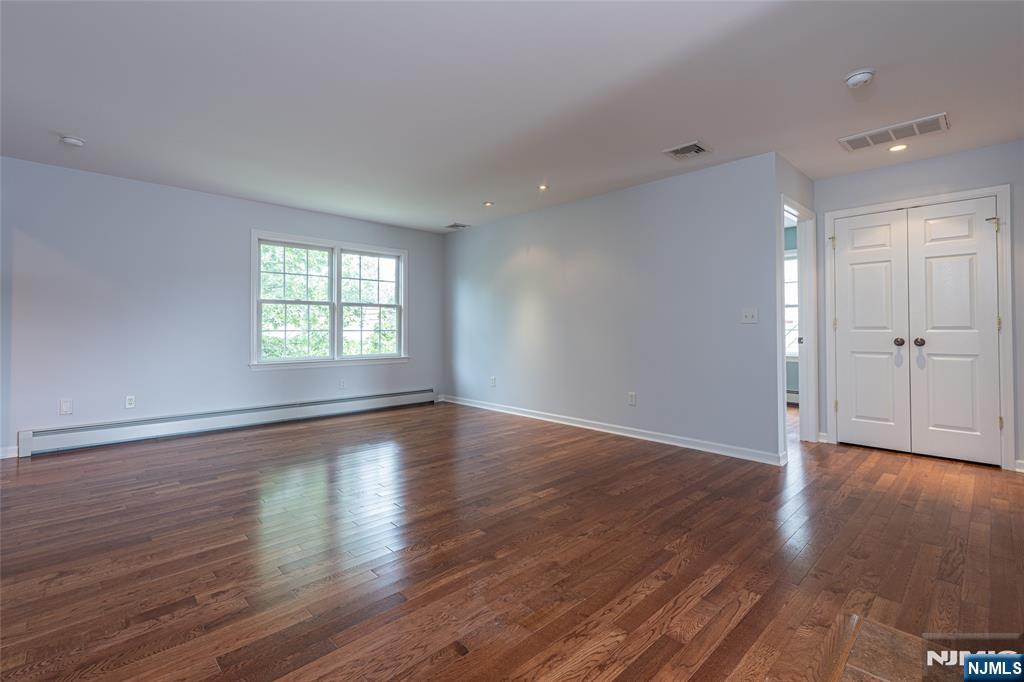 Unique second floor apartment with an open floor plan that was professionally painted and cleaned. It offers a primary suite with Bath(SS) and a second bedroom plus a full second full bath and an in unit laundry. Each bedroom has a nice size closet. The granite and maple kitchen boasts of stainless appliances with an island with seating for four and access to the deck. A huge bonus is the third floor great room. (Approx 18 X 24) and basement storage which is accessed via an exterior door. Amenities includes two onsite parking spots(tandem), central air, and hardwood floors. Landlord requires a credit check, interview, references and tenant insurance. Landlord handles the lawn maintenance and snow removal. No pets or smoking, Move In Ready and minutes to town, park and short ride to NJ Transit station.