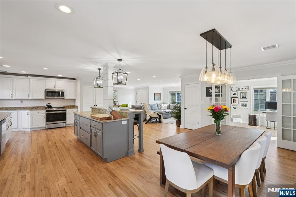 **TAXES ARE $15,010!** Pristine Cul-de-sac Colonial nestled in sought-after Ramsey! Impeccably maintained with numerous updates by both current and previous owners, this turn-key 4-bedroom, 2.5 baths residence blends functionality with entertainment appeal. The recently painted exterior and manicured landscaping set the tone for the home's fresh feel and open-concept interior. The sun-filled main level features newly refinished hardwood floors flowing from the spacious living room into a modern chef's kitchen with an oversized center island, granite countertops, and a dedicated dining area. Indoor-outdoor living is seamless with access from both the kitchen and dining area to a spectacular outdoor space, remodeled in 2024, featuring a fully fenced private yard with a pergola, patio areas for relaxing and al fresco dining, and a charming fire pit seating area. The main level is rounded out by a versatile home office or den and a powder room. Upstairs, the primary suite offers a private full bath, accompanied by 3 sizable bedrooms and a hallway bath. The expansive finished lower level provides endless flexibility and space for both a family or rec room and a bonus room for a home gym or guest space. With a 2-car garage, newer A/C, and a prime location a stone's throw from the heart of Main Street, and near Ramsey's award-winning schools and NYC transit, this home is truly not to be missed!