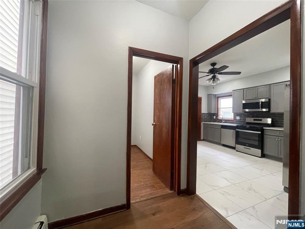 This newly remodeled apartment has been freshly painted, new bathroom and new kitchen with granite and stainless steel appliances. Walking distance to the legendary TOPS Dinner and HARRISON PATH STATION. This nice size apartment offers good size rooms and a large eat in kitchen, access to backyard for barbecues, laundry mats few feet from apartment across the street. This apartment is worth checking out.