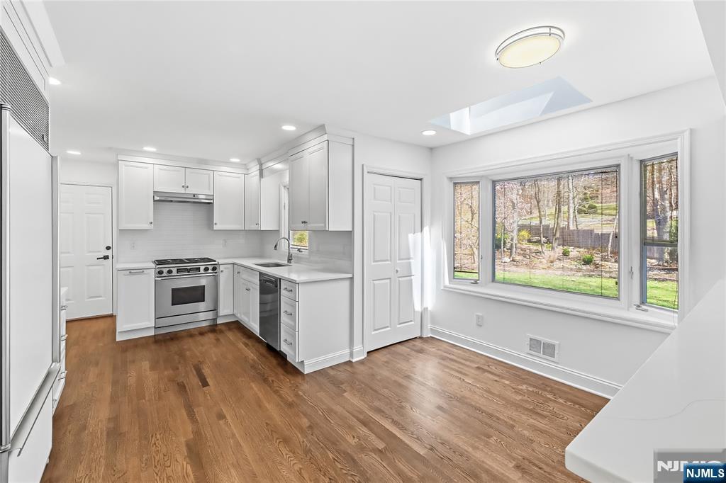 Stately and exquisitely renovated Center Hall Colonial w/remarkable curb appeal & situated on a quiet Residential Street in Northern River Vale. Exceptional curb appeal, expansive lot & extraordinary space. Newly finished glistening hardwood floors throughout. Huge Living Room/French Doors & Dining Room. New Ken Bauer Kitchen cabinetry & quartz counters opens to a Breakfast Rm overlooking the spectacular rear yard. Open flow to the family room leading to the Cathedral Ceiling 3 Season Rm. Stunning new bathroom & 2 Car Garage. Romantic Primary Suite w/2 Walk in Closets & Primary Bath. 3 additional Bedrooms & Full Renovated New Bath . Newly renovated Basement w/access to the garage, large recreation room, home office, PLUS brand new coretech lvp flooring & new full bathroom/laundry room. Enjoy new recessed lighting & fixtures, french doors, iron balusters, a Built in Generator, CAC, PLUS East/West light & bright exposure. Beauty, property, sophistication & location await you