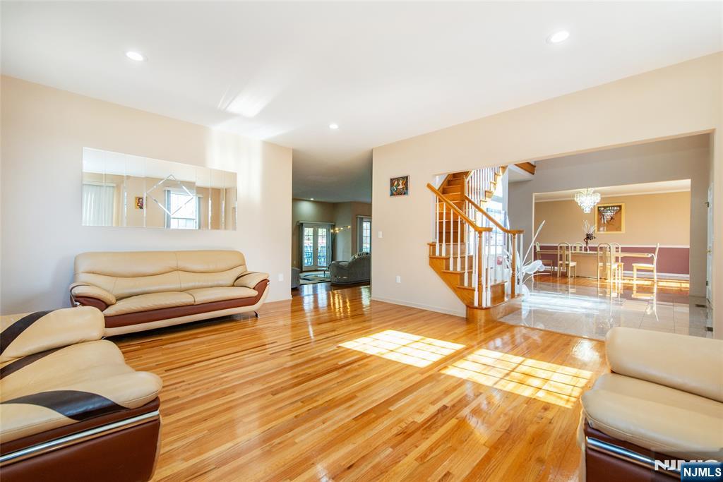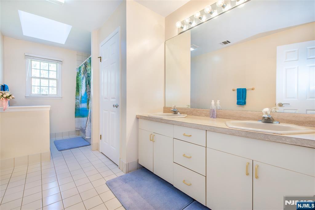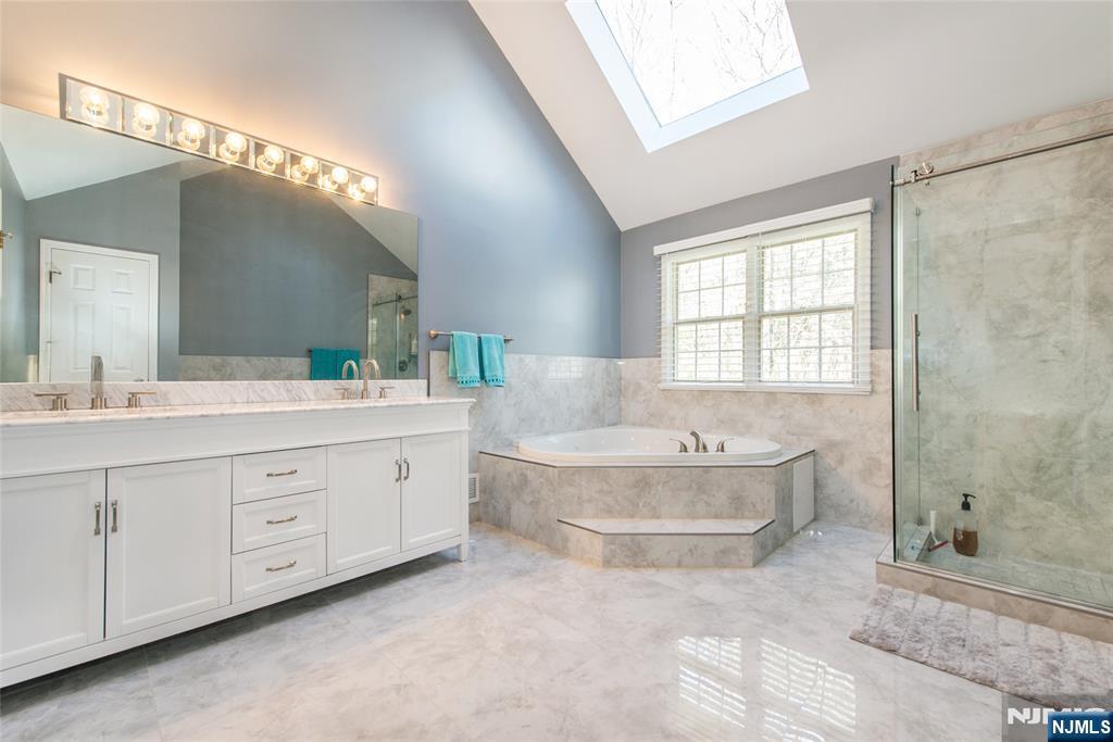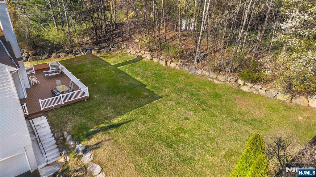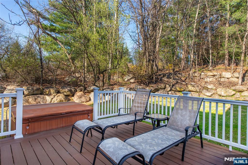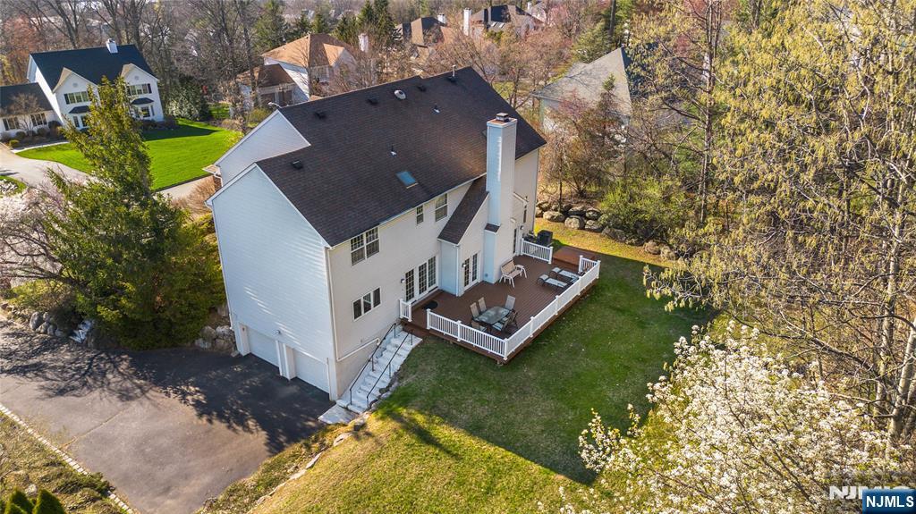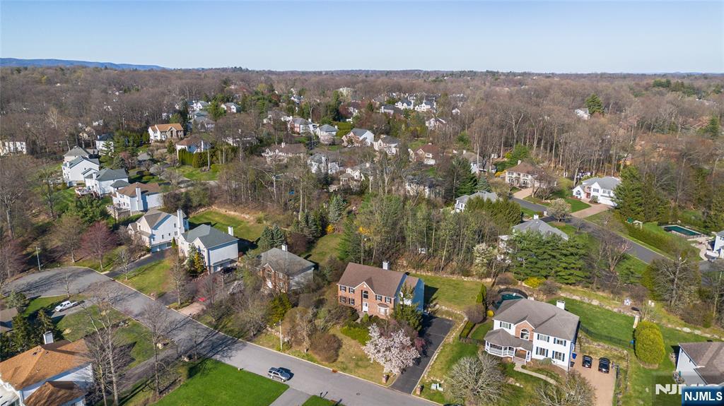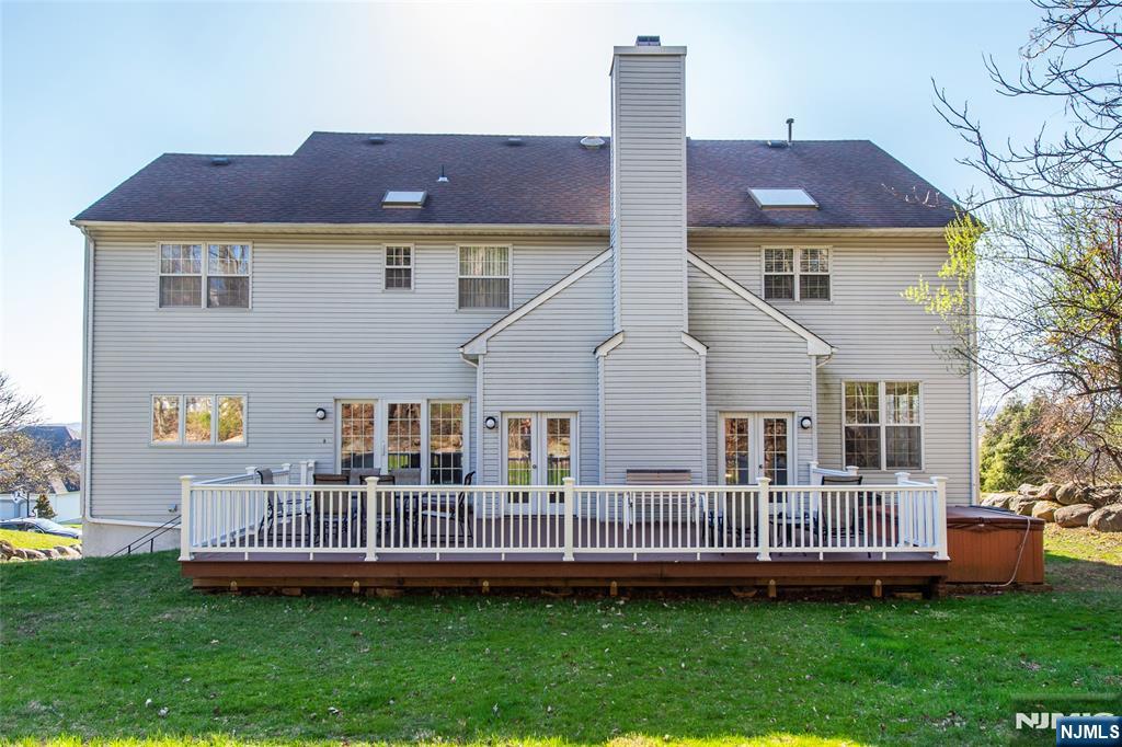 Welcome to Applewoods Estates, where timeless architecture meets modern luxury. This elegantly crafted Colonial offers close to 4,000 sq. ft. across the main floors and nearly 6,000 sq. ft. of finished living space. Featuring 4 bedrooms, 4 bathrooms, and a private home office. The home sits peacefully on a quiet Mahwah cul-de-sac and showcases breathtaking, unobstructed views of Campgaw Mountain. Located just a short walk to both the train and bus, the home offers exceptional convenience for NYC commuters - a rare advantage in such a serene setting. Inside, a sun-filled open floor plan highlights granite flooring, skylights, custom blinds, gracious ceiling heights, and a sunken family room perfect for cozy gatherings. The grand formal dining room flows seamlessly into expansive living spaces, ideal for both intimate evenings and large-scale entertaining. The Italian-inspired gourmet kitchen is a chef’s delight, featuring granite countertops, premium stainless-steel appliances, a Sub-Zero refrigerator, and custom cabinetry. Upstairs, the remodeled primary suite offers a spa-like escape, while the finished basement with its private sauna creates the perfect haven for relaxation and wellness. Step outside to a brand-new oversized deck, an exceptional space for outdoor dining, gatherings, or simply savoring sunsets over the mountains.