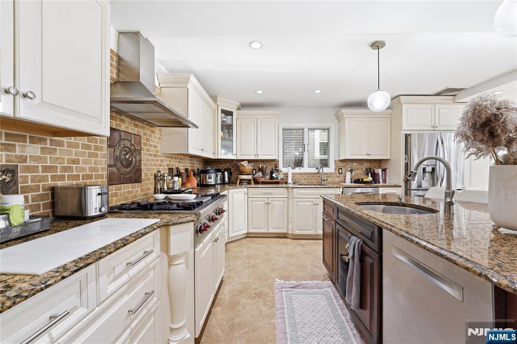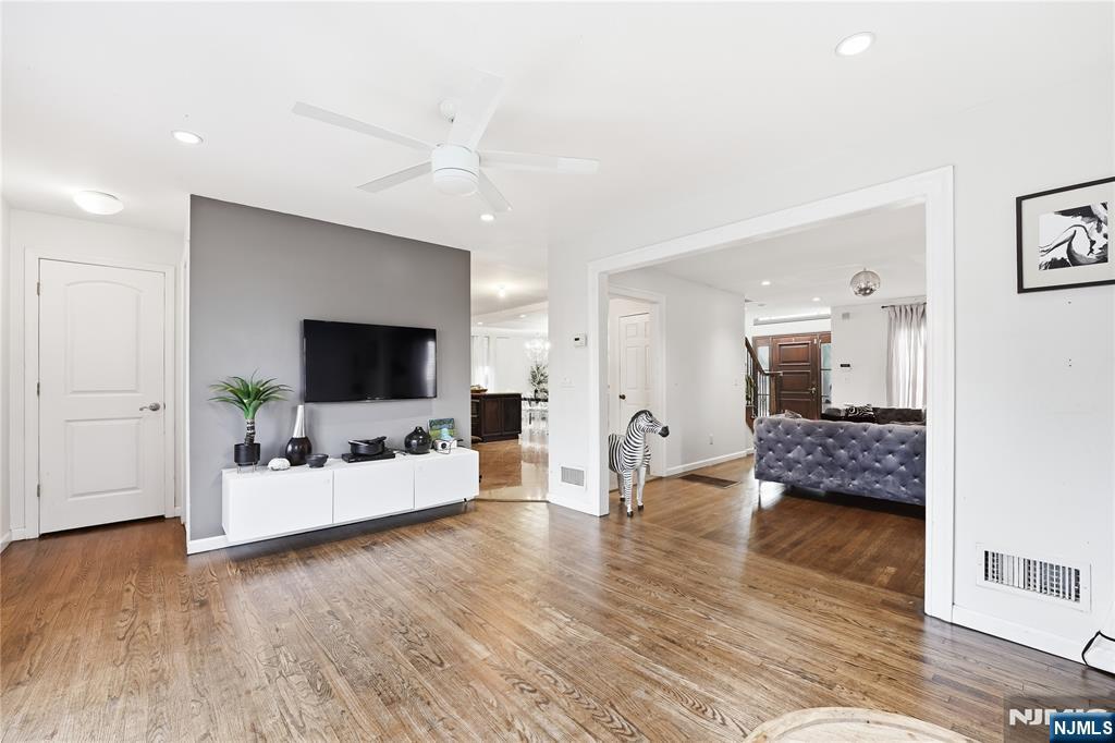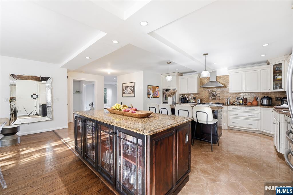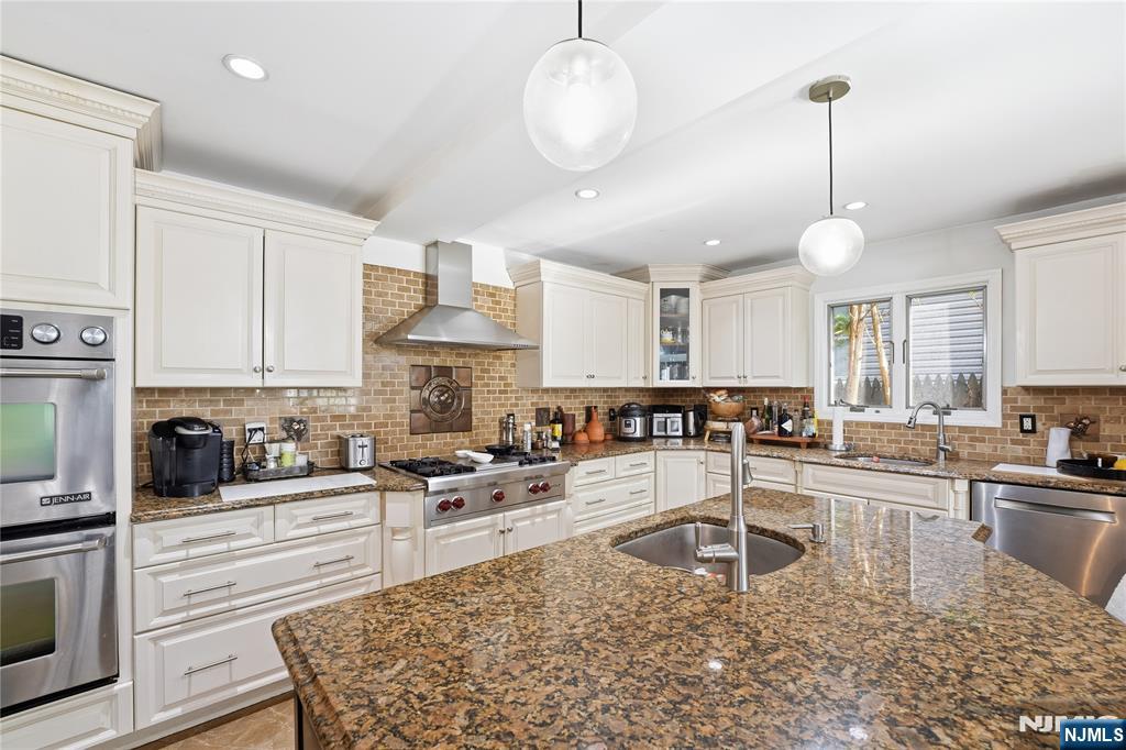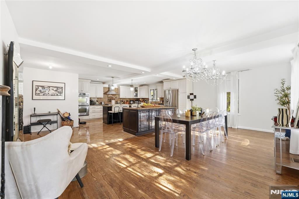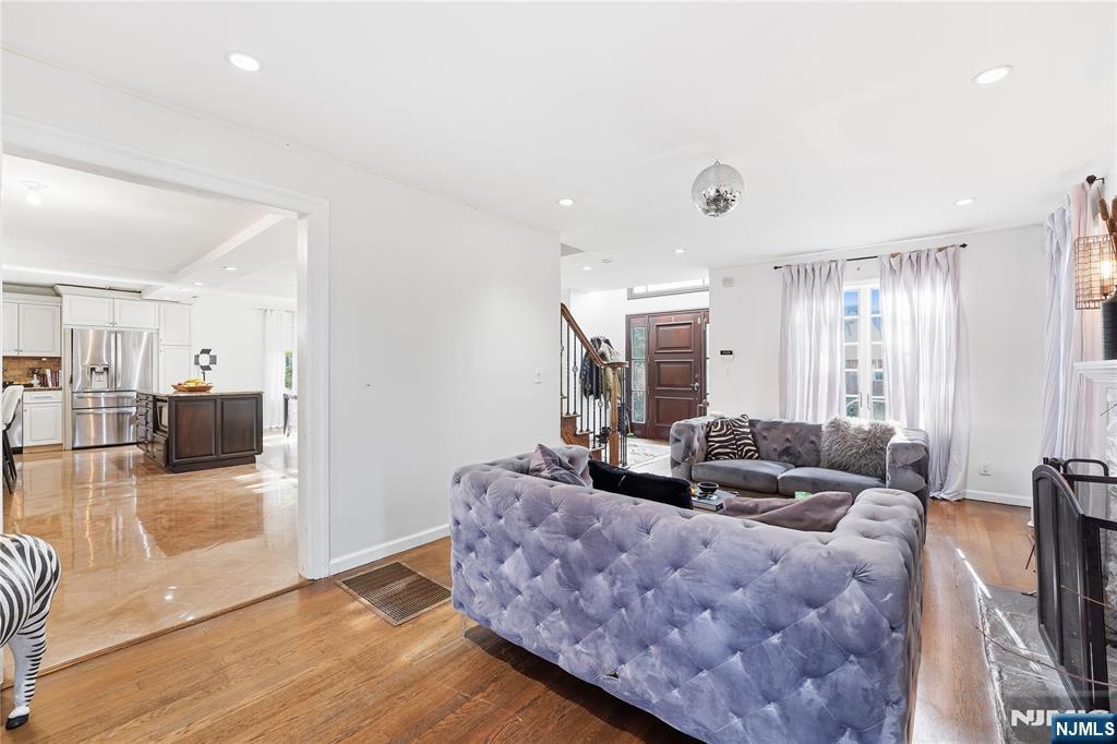 Experience elevated living in this expansive Center Hall Colonial, ideally located in one of Teaneck’s most sought-after neighborhoods. Offering generous space and thoughtful design, this home provides convenient access to houses of worship, top-rated schools, parks, and NYC transportation. A sun-filled two-story foyer welcomes you into a warm and inviting layout. The main level features a spacious living room with a wood-burning fireplace and a bright family room with French doors that open to a beautifully landscaped backyard and patioâ€â€perfect for entertaining. The oversized kosher kitchen is designed for both function and style, complete with dual islands, double ovens, two dishwashers, premium appliances, custom cabinetry, granite countertops, and a striking brick backsplash, flowing seamlessly into the formal dining area. A powder room completes the first floor. Upstairs offers three generously sized bedrooms, a full bath, and a stunning primary suite with vaulted ceilings, a spa-like bath, and a custom walk-in closet. A sunlit office adds flexibility for today’s lifestyle. The unfinished basement includes a laundry area and half bath, offering endless potential to customize. A rare opportunity to own a spacious, well-appointed home in a prime location.