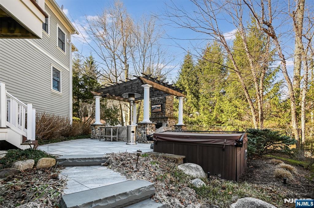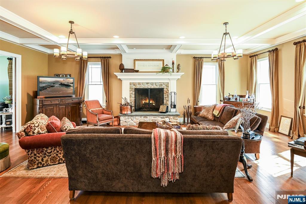 Stunning Custom built home by renowned Builder John Haboob in 2008 showcasing a blend of Classic Colonial and American Farmhouse Architectural design. This over 5,000 sq ft home sits beautifully on a cul-de-sac in one of the most desirable neighborhoods in Wyckoff. First floor boasts open floor plan with 10 ft coffered ceilings, hand-laid, oversized fireplace, eat-in chefs kitchen, large dining room and a spacious ensuite bedroom. Additional unique features include a full house generator, two laundry rooms, a second floor primary suite with attached office/bonus room giving a total of 5 bedrooms and 5.5 baths along w/ a finished basement w/full bath and mudroom adding an additional 1,000 sqft of living space. The private fenced lot offers a large deck and gorgeous stone fireplace framed by a lattice pergola and an 8-person spa, backing to the woods creating the most picturesque backyard perfect for family and entertaining. Nickole Bello Compass 201.953.6895 Nickole.bello@compass.com