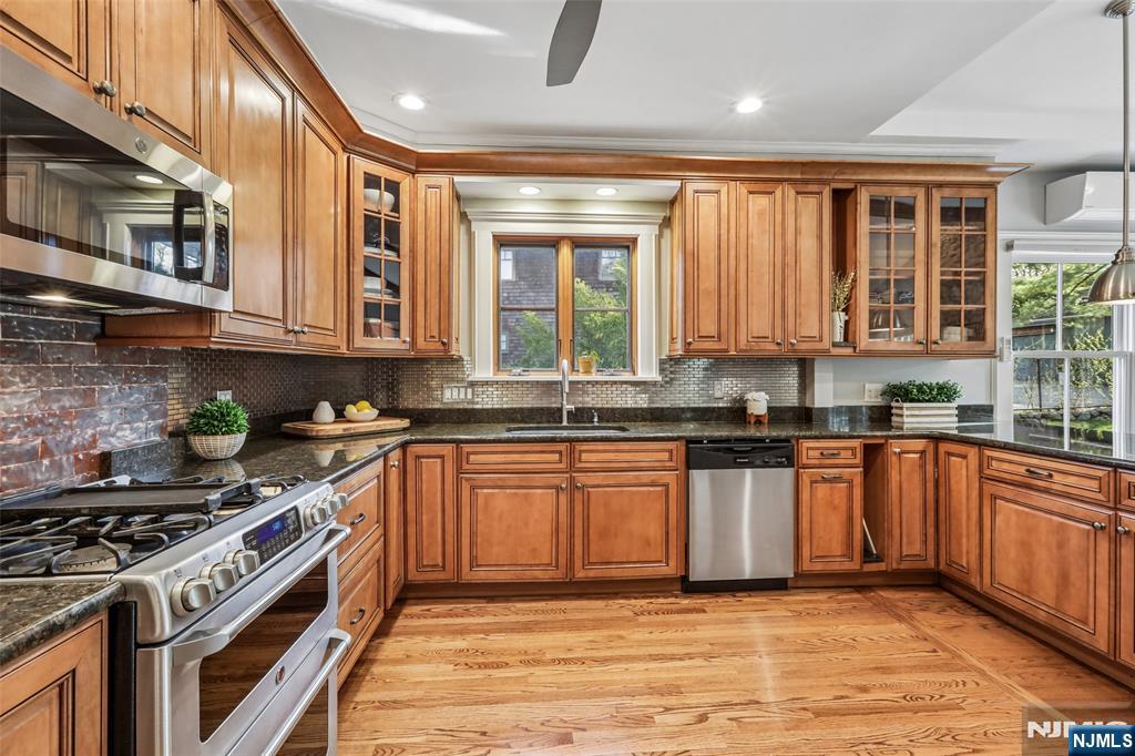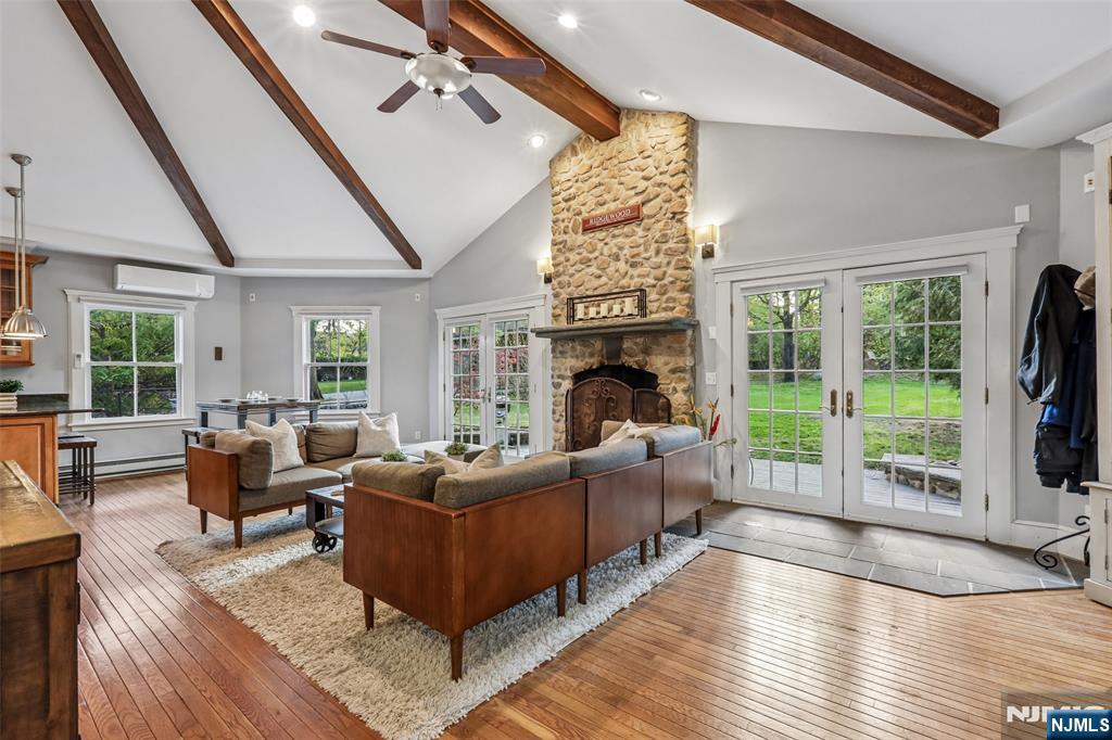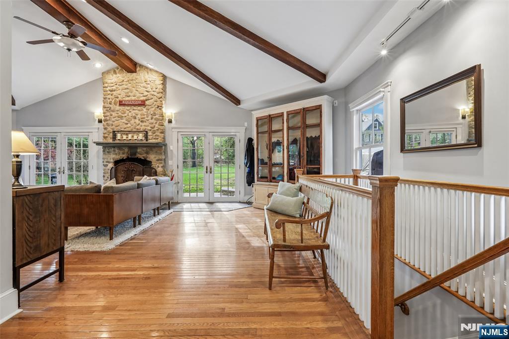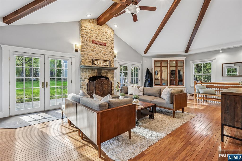 Welcome to this distinctive Colonial, where striking architecture meets an exceptional lifestyle in one of Ridgewood’s rare downtown locations. Nestled on almost 1/2 acre park-like property, this gem offers effortless access to everything that makes Ridgewood so special. A welcoming wraparound lemonade porch, expansive cobblestone driveway, & bluestone patio create the perfect setting for gathering with family & friends- whether enjoying the Fourth of July parade, fireworks, or everyday moments. Inside, spacious rooms with high ceilings & great flow showcase vintage details, modern updates & timeless character. The home is anchored by a breathtaking great room with a dramatic two-story stone fireplace & radial exposed beams, while oversized windows & French doors fill the space with natural light. Just moments from the library, Graydon Pool, The Bandshell, downtown shops, restaurants, & transportation, this is a rare opportunity to enjoy refined living in the heart of it all.