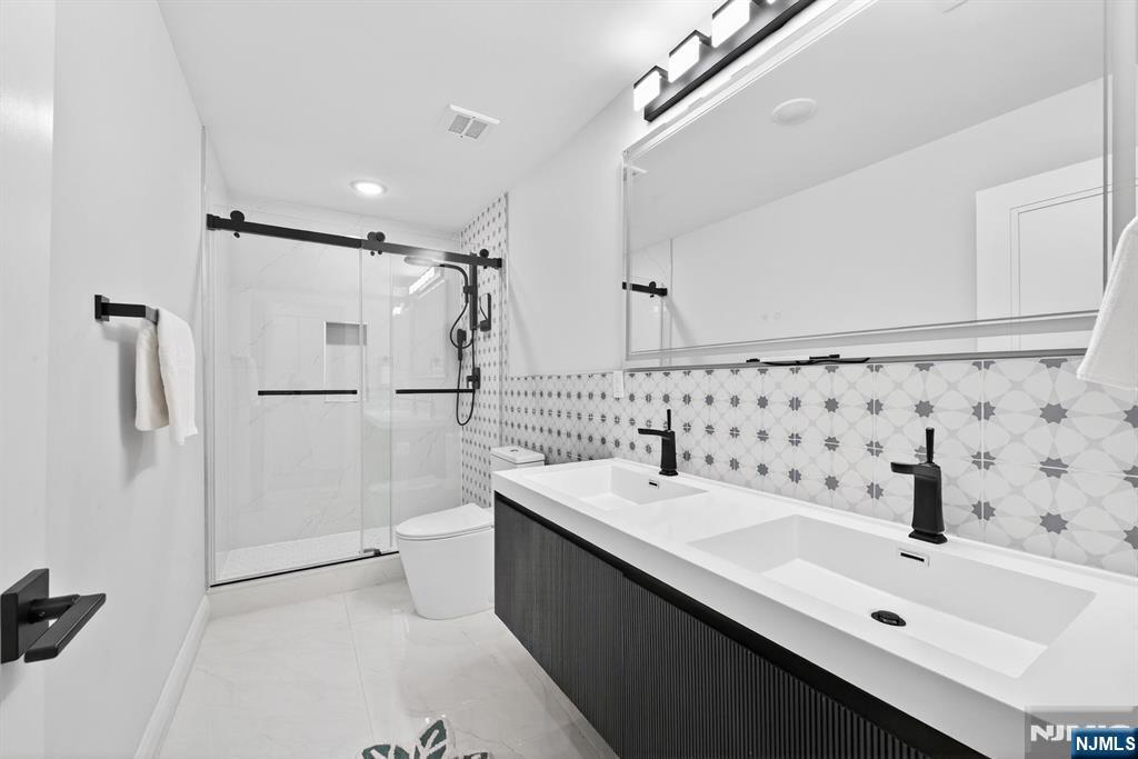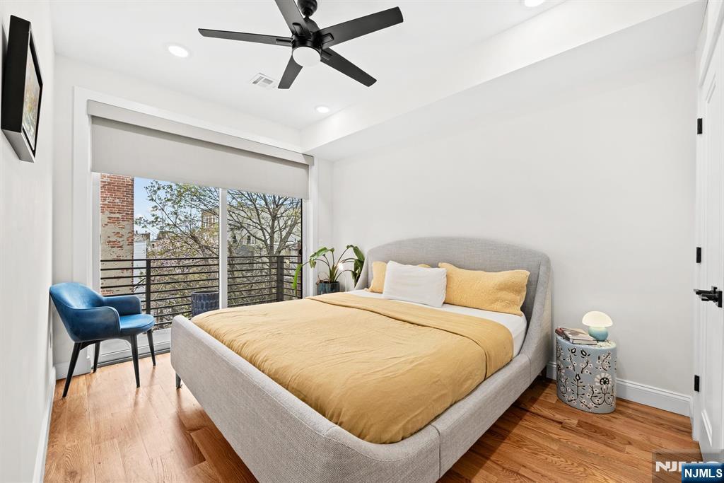 Welcome to this beautiful 3-bedroom, 2.5-bathroom condo in the heart of Jersey City Heights with a private roof deck and unobstructed views of Pershing Field Park and the NYC skyline. This bright and airy, east-facing home features an open layout with a sun-filled living area, floor-to-ceiling windows, and a Juliet balcony overlooking Pershing Field Park. The main level includes a powder room and a modern kitchen with stainless steel appliances and sleek cabinetry. Upstairs, the primary suite offers space for an office or den and an en-suite bathroom with porcelain tile, double vanity, and a lighted mirror. Two additional bedrooms and a full bathroom provide flexibility for guests, a home office, or other needs, with one bedroom offering access to a private balcony. A stacked washer/dryer is conveniently located in the hallway. The home also features a private 428 sq ft rooftop deck, ideal for outdoor entertaining or relaxing with NYC skyline views. Located one block from Central Avenue with quick access to local shops, restaurants, and everyday necessities. Conveniently near a bus stop with direct access to Port Authority in NYC as well as the Journal Square Path station.