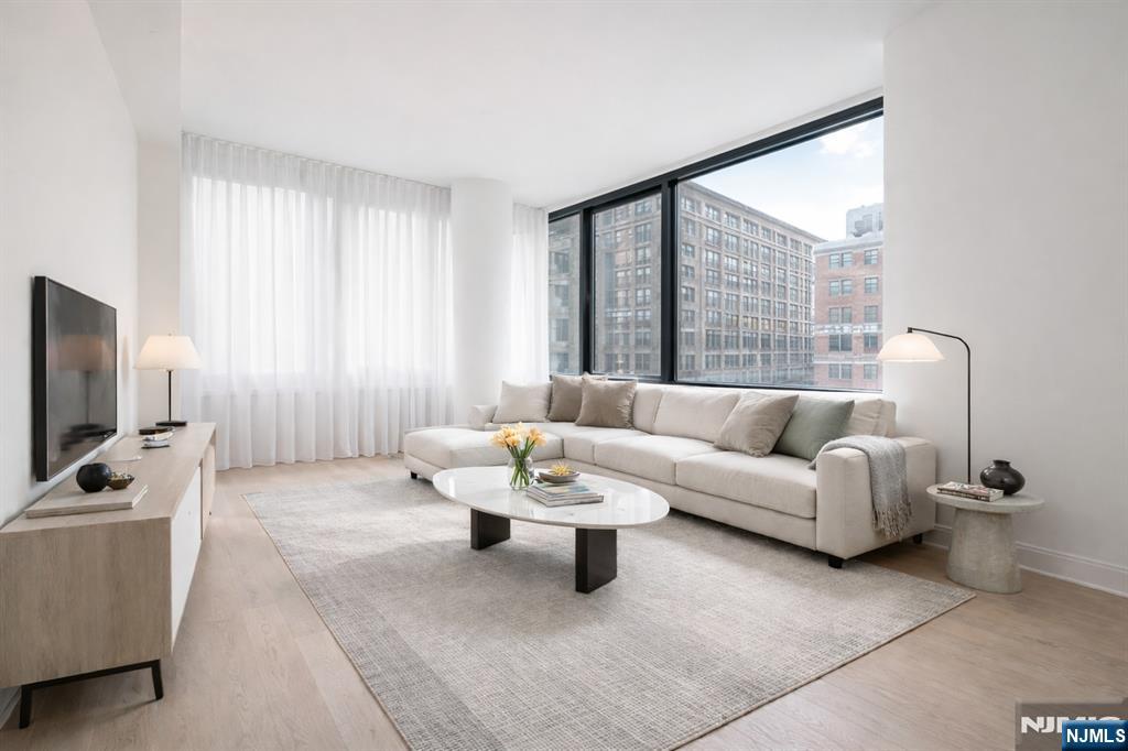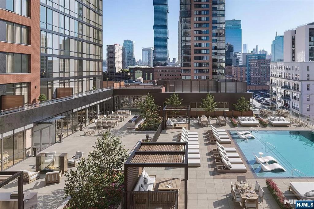 Bright 2 beds/ 2baths layout corner unit (1141 sf) in a luxury building built by Toll Brothers. It's in the heart of downtown, Jersey City close to restaurants, markets and coffee shops with Whole Foods. The Grove Street PATH station is only 2 blocks away, making it easy to commute to the WTC area in 10 minutes. The building features 24-hour concierge service, 27,000 SF amenity of the art Gym, Yoga room, private resident's lounge, game room, outdoor pool and beautifully landscaped rooftop gardens/terraces with unobstructed NYC and Hudson River views. Sundecks and Courtyards featuring an Open-Air Fireplace & BBQs, and Children's playroom. Home features a great open layout. Thermador & Bosch appliances, quartz countertops, full-sized vented washer/dryer in the unit, wide plank wide oak floors, Central A/C, custom cabinets, and amazingly oversized windows which floods the home with light. Enjoy a gorgeous waterfront promenade all within close distance for the ultimate in convenience.