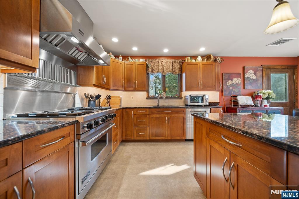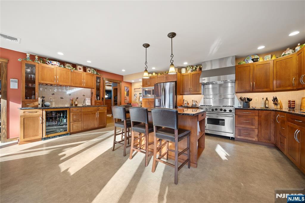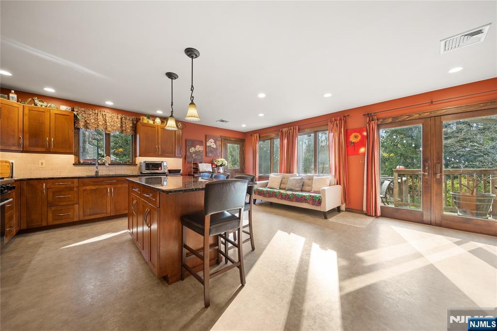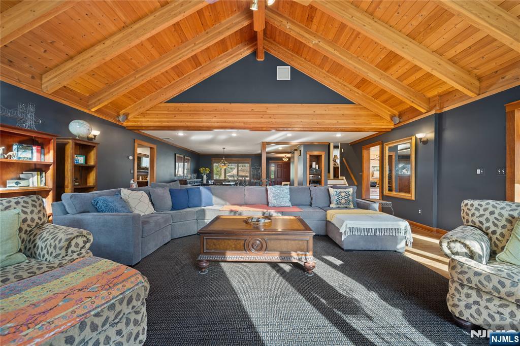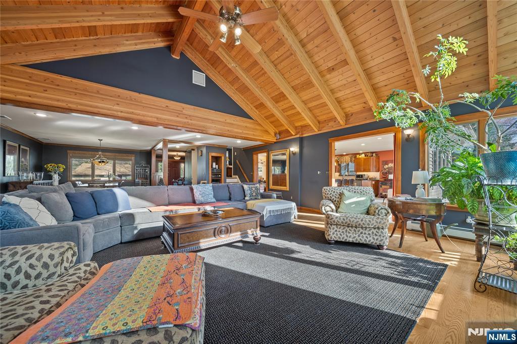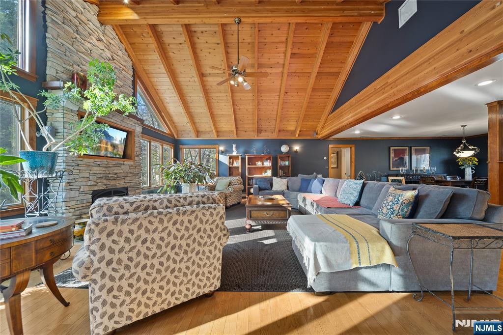 Pride of ownership for 28 years! Fully renovated and expanded Tandy & Allen ranch in a desirable neighborhood with open space. Just 1 mile to the train and a 4-minute walk to the bus. Features include a dramatic 575 sq ft family room with 15-ft ceilings, exposed beams, and Mendota gas fireplace. Updated 400 sq ft kitchen with large granite island, high-end appliances, Viking stove, and beverage station. Andersen windows and French doors lead to a TimberTech deck. First floor offers dining area, full bath, and 3 bedrooms. Private primary suite with vaulted ceiling, spa bath, steam shower, loft, and walk-in closet. Lower level includes laundry, half bath, and finished basement with bar, game room, TV area, and flexible space. Walk-out to patio with Saratoga hot tub, additional patio with electric/cable, and landscaped yard with shed. Extras: 2-car garage, 3-zone central air, 4-zone heat, 200-amp service, and underground utilities (Fios & Optimum). Ample storage throughout, thoughtfully designed living spaces, and quality craftsmanship make this home perfect for both everyday living and entertaining. Move-in ready with exceptional indoor-outdoor flow. Enjoy multiple outdoor living areas ideal for gatherings, relaxing evenings, and year-round use. A rare opportunity to own a truly special, well-maintained home in a prime location.