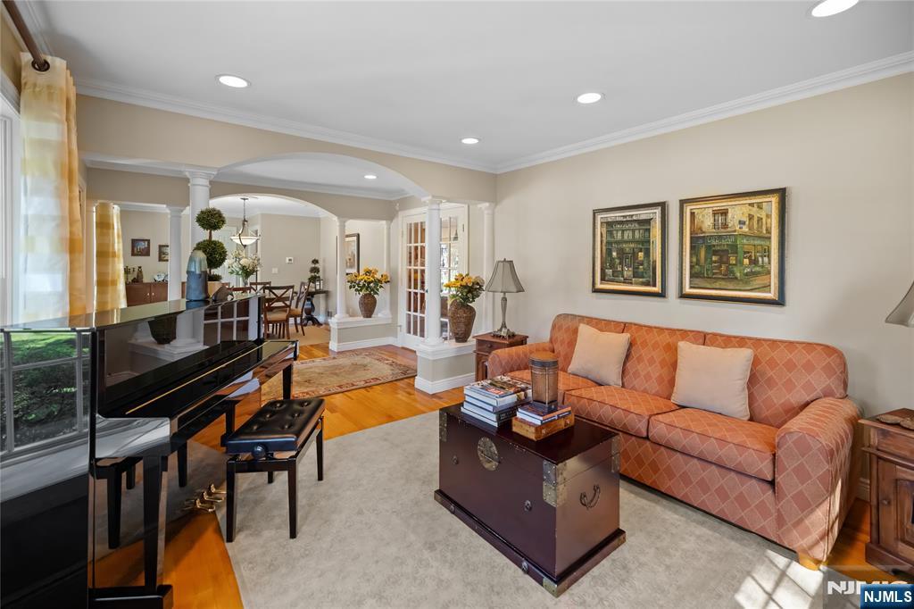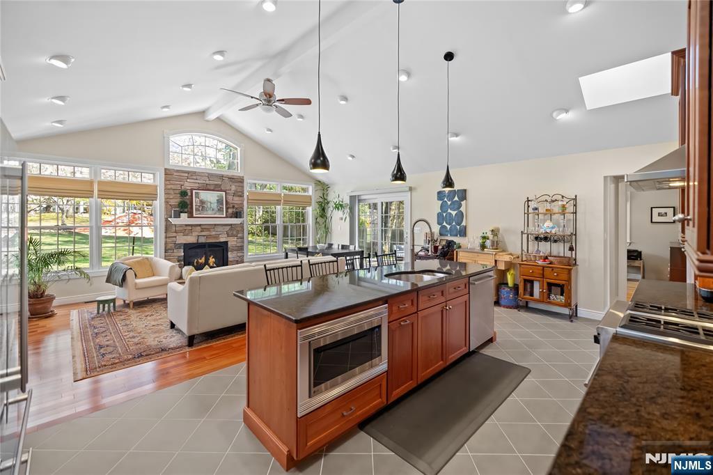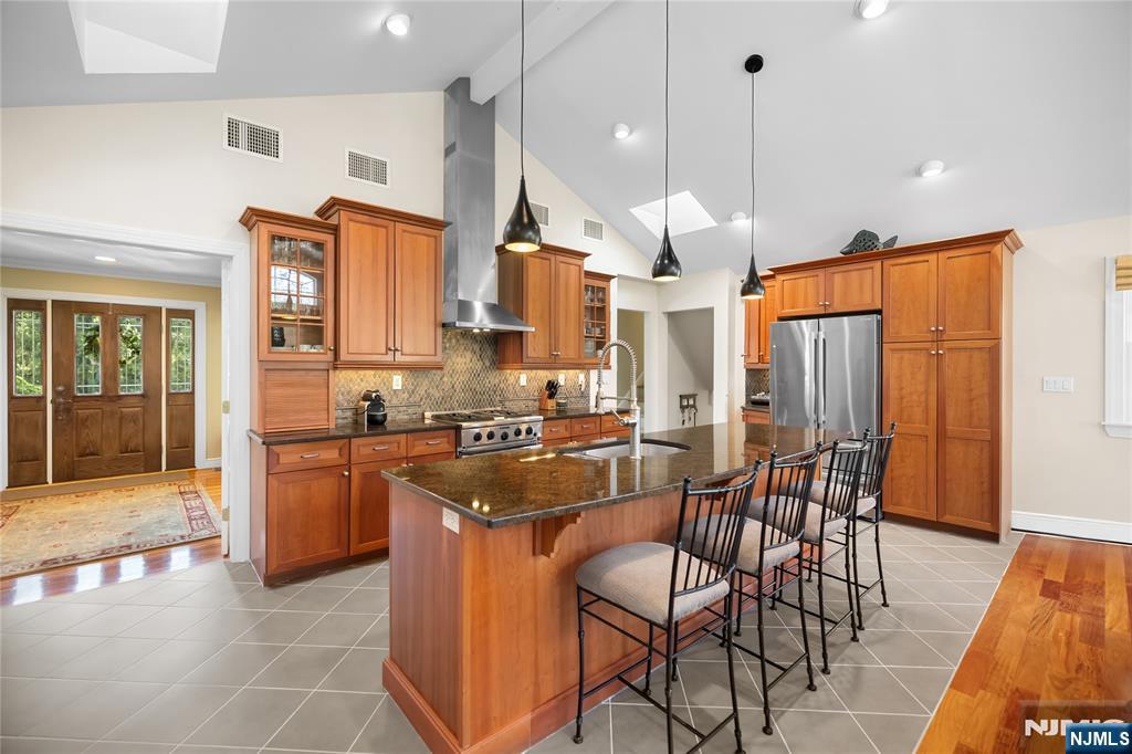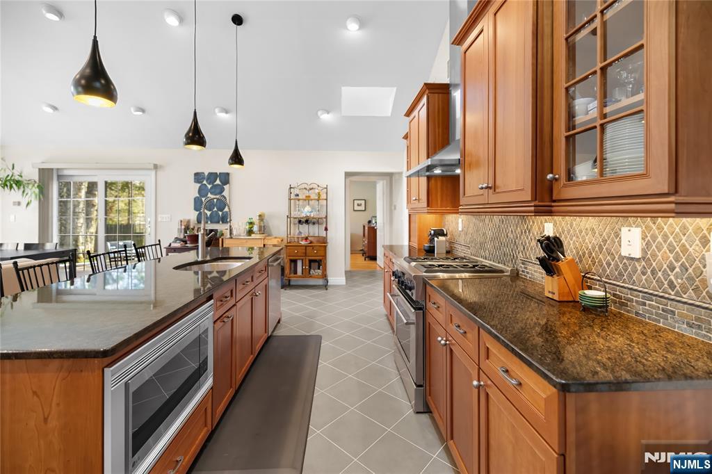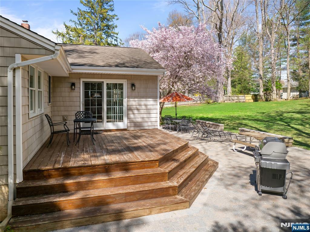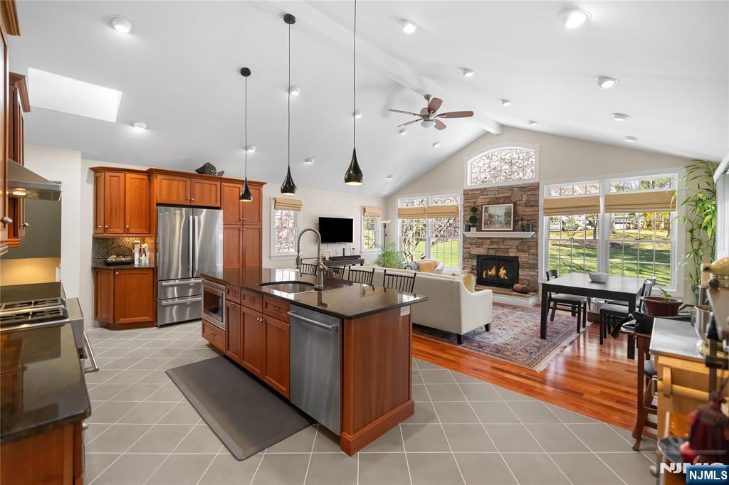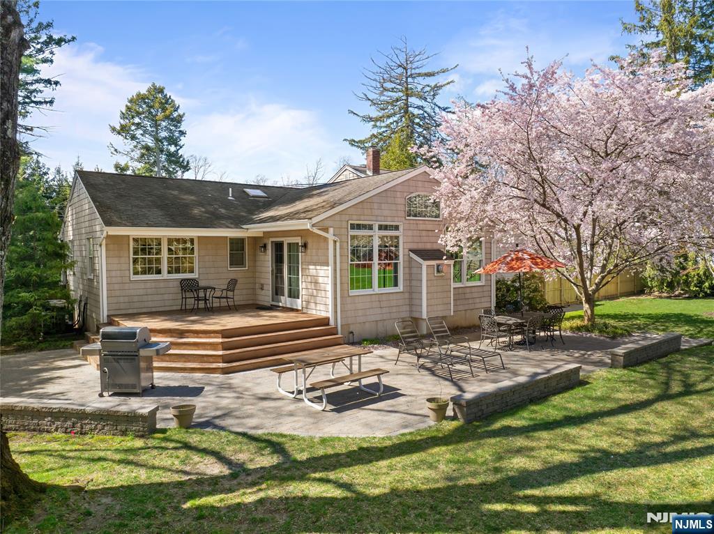 This Remarkable Expanded & Renovated Split Ranch w/soaring ceilings, huge rooms & open floor plan blends the sophistication of Contemporary Elegance w/the convenience of a high end life style. You will LOVE the Incredible deep & wide private property! The Columned Entry foyer leads to the Living Room & Dining Room. The Extraordinary Cathedral Ceiling Kitchen, Great Room & Breakfast Room addition w/fireplace is Beyond Beautiful, and allows for enjoying exemplary culinary cuisine, entertaining, & an incredible Life Style! The Updated Kitchen w/Breakfast Rm, Brkfst Bar, custom Cherry Cabinetry, Granite Counters, & Stainless appliances, opens to the Expansive Cathedral Ceiling Great Room w/fireplace & views of the spectacular rear yard. This incredible design & open floor plan is right out of Architectural Digest, and is truly breathtaking. A hallway leads to the home office/4th BR & Powder Rm. Upstairs is a Primary Suite w/Renovated Primary Bath, 2 additonal Bedrooms & a Beautiful Main Bath. The Ground level off the Kitchen has a large Laundry Area/ Mud Room which leads to the spacious 2 car attached Garage. The Lower Level has a large Recreation Room & lots of Storage. The exceptional rear Yard is remarkable in space and beauty, with paver patio, deck & your own private park. River Vale offers an Easy nyc commute by car, bus & rail, Seasonal Town Farmer's Market & close proximity to fine Restaurants, & the Exceptional River Vale Library. You will LOVE Living Here!