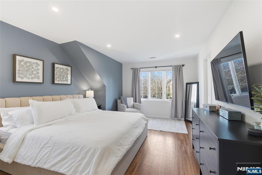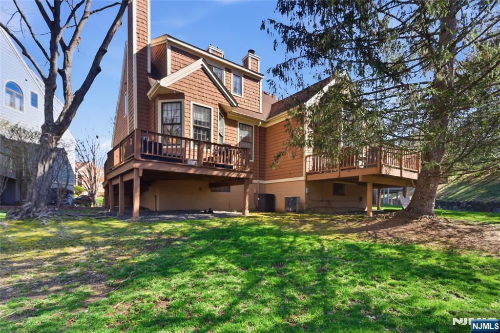 Welcome to this beautifully updated end-unit townhouse located in the highly sought-after community of Wayne. This home offers a bright and spacious layout, featuring gleaming hardwood floors, soaring ceilings, and an abundance of natural light throughout. The main living area boasts an open-concept design, seamlessly connecting the kitchen, dining, and family roomâ€â€perfect for both everyday living and entertaining. A cozy wood-burning fireplace adds warmth and charm, while the private deck overlooks a serene, park-like setting. Just a few steps away, you’ll find an oversized living room along with a convenient half bath. Upstairs, the second level features two generously sized bedrooms, each with its own en-suite bathroom. The primary suite includes a walk-in closet and a spacious bath with dual sinks and a separate shower. The second bedroom offers its own full bath with a tub/shower combination. A dedicated laundry area is also located on this level for added convenience. The lower level provides direct access to a two-car garage and includes a finished recreation roomâ€â€ideal for a home office, gym, or additional living space. With its desirable location, functional layout, and inviting features, this home presents a wonderful opportunity you won’t want to miss.