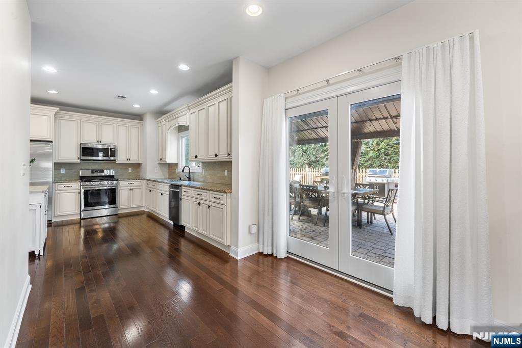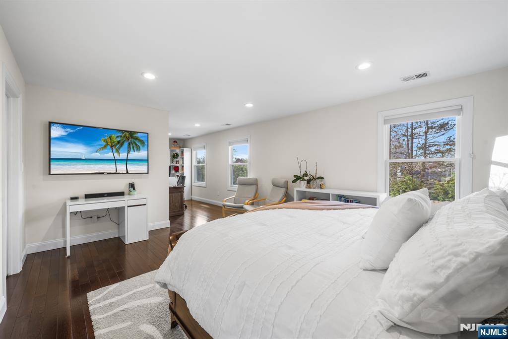 Welcome to this beautifully updated Custom Center Hall Colonial nestled in a desirable residential neighborhood in Emerson, NJ. This spacious home offers 5 generously sized bedrooms & 3.5 bathrooms, thoughtfully designed for both comfort & functionality. A grand two-story entry foyer sets the tone, leading into an open floor plan that seamlessly blends everyday living & entertaining. The inviting living areas are anchored by a cozy gas FP, creating a warm & welcome atmosphere on the main level. Thru-out the home, you'll find gleaming hardwood floors & freshly painted interiors in soft, neutral tones that enhance the abundance of natural light. The EI-Kitchen is a true centerpiece, featuring stainless steel appliances, elegant granite countertops, pantry & ample cabinetry for all your storage needs. The first level includes a convenient guest suite, complete with shower access, ideal for visitors or extended living. Upstairs, the Primary Bedroom Suite offers a private retreat with a separate sitting room, abundant natural light & a spacious ensuite bath. Energy saving (owned) Solar. Enjoy a fully fenced backyard oasis featuring a brand-new gazebo, multiple storage sheds, & plenty of room for outdoor gatherings or relaxation. Highly rated Emerson schools. Exceptionally well maintained & ideally located close to NYC transportation via NJ Transit Pascack Valley Line trains & buses. This home perfectly balances suburban comfort with commuter convenience. This one won't last.