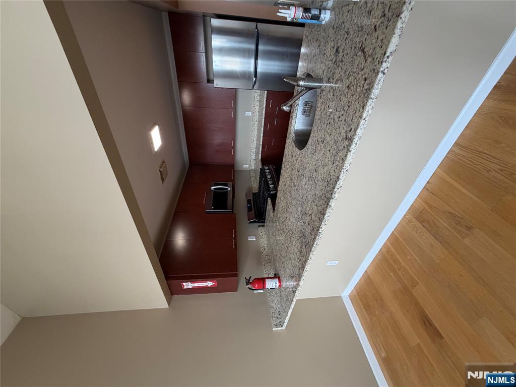 Modern condo featuring a sleek, updated kitchen with newer appliances, a spacious bedroom with a large closet, and a beautifully bathroom. The unit offers high ceilings that create an open, airy feel, along with central A/C for year-round comfort. Laundry is conveniently located in the building. Ideally situated close to major highways and easy access to trains to NYC perfect for commuters. low taxes for 2026 Estimated around $3554 & HOA just $230 a month including the water. PRICE TO SELL