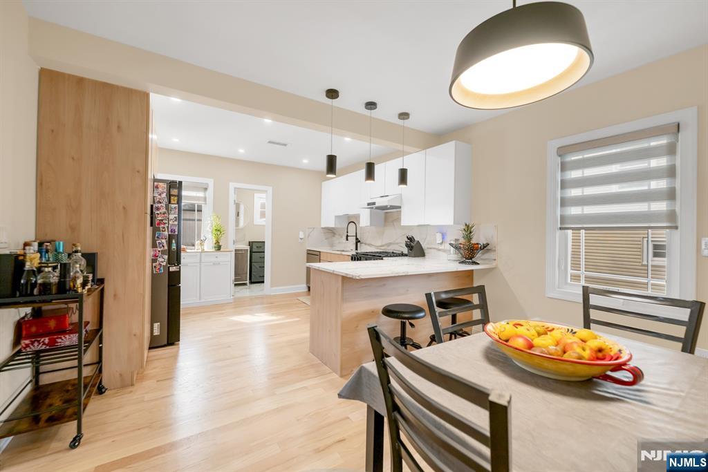 Beautifully renovated and modern Colonial in the heart of Rochelle Park offering 2 bedrooms and 1.5 bathrooms. The main level features a bright open-concept layout with a stylish, newly renovated kitchen showcasing two-tone European-style cabinetry, stainless steel appliances, and a breakfast bar with sleek quartz countertops. The kitchen flows seamlessly into the living and dining areas, creating an ideal space for both everyday living and entertaining. A dedicated home office and a renovated powder room complete the first floor. Upstairs you will find two generously sized bedrooms and a fully renovated full bathroom. Additional features include an unfinished basement offering great storage or future potential, a long driveway, and a nice flat backyard. Low taxes and a prime Bergen County location with easy access to shopping, restaurants, and major highways make this home an excellent choice. 1st floor den / office and be a potential 3rd bedroom