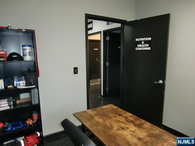 Move in Condition private office (#1) of 12' x 10'; Generous common area with sizeable lounge and access to 2 bathrooms and 2 separate shower facilities; 24/7 access from common area main entrance lobby of the building; All Utilities are included; Other businesses in building are Cross Fit Guerilla/Paramus (Prime Tenant), Virtual Golf, Baseball Training Center and a Church; Clean modern space with generous on-site unassigned parking; Other businesses on the cul-de-sac street include dance studio, medical facilities, a children's day care and children's fun place. Space is ideal for nutritionist or many type of fitness or sport related businesses. Also available is a 2nd office (Office #2 of 9' x 10'); Offices are not connected; Available month to month with a 2-month security deposit required; Available immediately