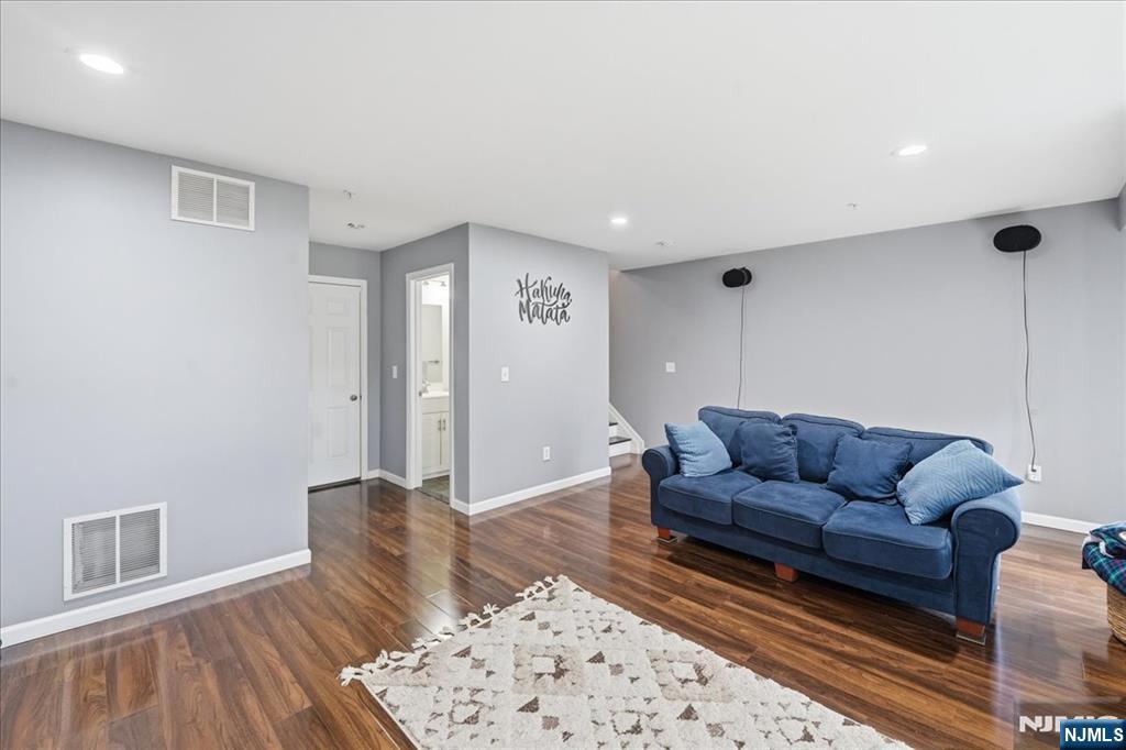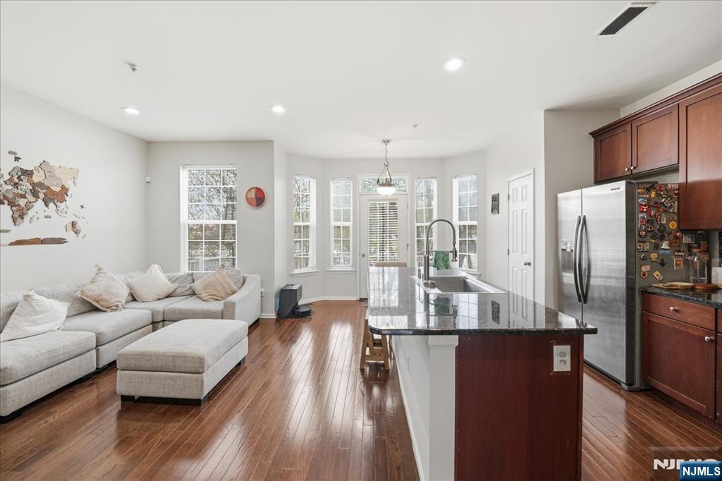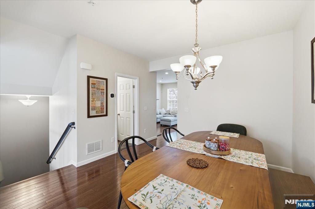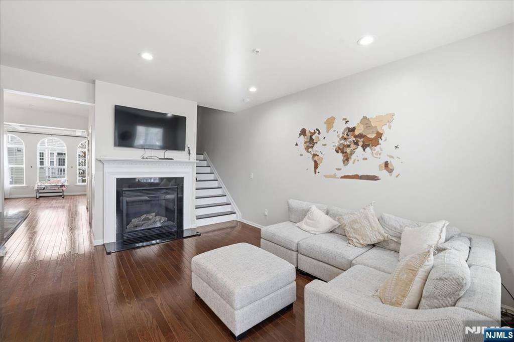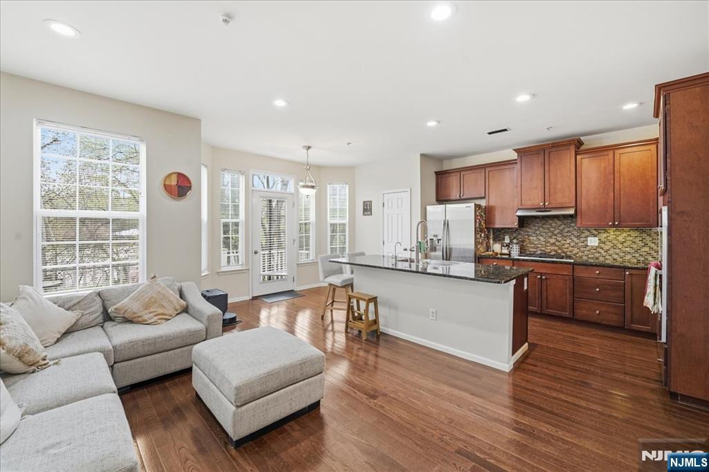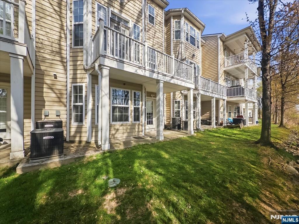 Welcome to this beautifully maintained brownstone-style townhome built in 2008 by Centex Builders, offering approx. 2,369 sq ft across three levels. This spacious home features 3 bedrooms, 2 full baths, and 2 half baths with hardwood floors throughout. The main level offers a bright living and dining area with floor to ceiling window and tray ceiling. In addition, there is a powder room, and an open family room with a gas fireplace leading to a gourmet kitchen with center island, granite countertops, 42†cabinets, stainless steel appliances, separate pantry and access to a private deck. Upstairs features a large primary suite with tray ceiling, walk-in closet with custom organizers, and en-suite bath with jetted tub, separate shower, and double vanity. Two additional bedrooms, full bath, and laundry room complete the level. Ground floor includes a versatile recreation room/office with a half bath and access to another private patio. Enjoy unobstructed meadow views, an oversized garage, and double driveway. Dual-zone HVAC with smart home with Nest thermostats and primary bedroom lighting. Low taxes & HOA. Convenient to NYC transportation & free shuttle to train station, schools, parks, shopping, and dining.