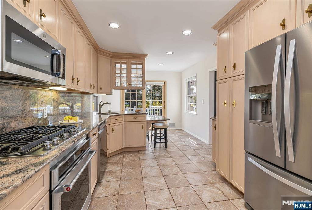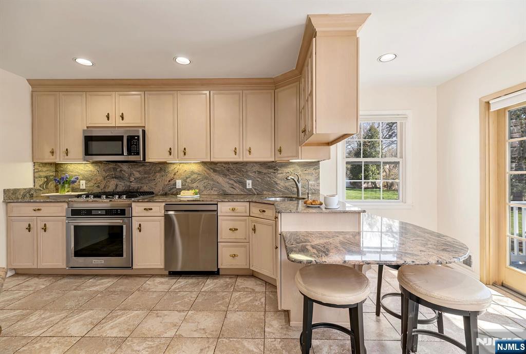 Welcome to 145 Merritt Drive, located in the highly desirable and prestigious White Beeches section of Oradell. Set on a flat, park-like property, this beautifully maintained 3-bedroom, 3 full bath home offers the perfect blend of comfort, style, and setting. Inside, an open, bright, and airy layout is filled with natural light. Newer flooring spans the main level, second level, and basement, creating a seamless, updated feel throughout. The spacious living and dining areas flow effortlessly for both everyday living and entertaining. The kitchen features sliders leading to an oversized deck, with a patio below, ideal for outdoor dining and gatherings, and is equipped with a newer dishwasher and microwave. The primary suite offers a walk-in closet and an ensuite bathroom, providing a comfortable and private retreat. A full hall bathroom, renovated in 2021, showcases an elegant marble vanity. Major updates have already been completed, including a new roof, hot water heater, and chimney liner (2021), offering peace of mind for years to come. The lush, level property provides a true park-like backdrop, perfect for relaxing or entertaining. A rare opportunity to own in one of Oradell’s most sought-after neighborhoods, close to top-rated schools, parks, and town amenities.