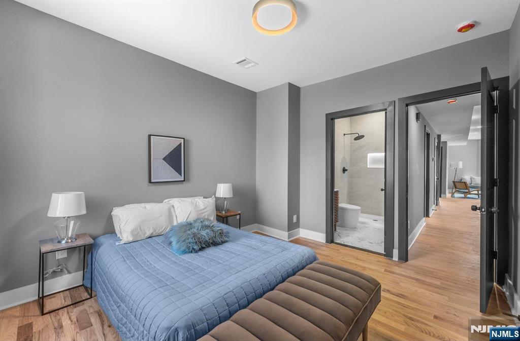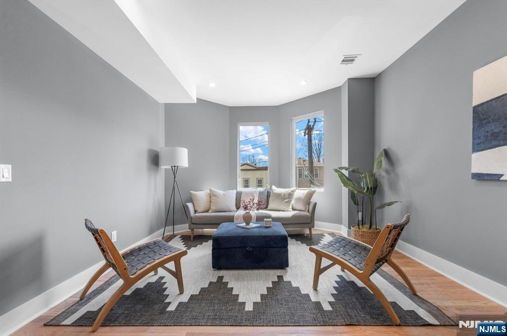 Stunning fully renovated 2-family duplex-style home in Bergen-Lafayette. Each sun-drenched unit spans 2 levels with 4 bedrooms, 3 full baths, featuring high ceilings, recessed lighting, and designer finishes throughout. Unit 1 offers a finished walkout basement, full bath, and access to a great size backyard. Unit 2 boasts NYC skyline views. Enjoy open-concept living, sleek kitchens, and spa-like bathrooms. Total of 8 bedrooms, 6 baths  ideal for owner-occupants or investors seeking strong income potential / house-hack opportunity. Located in a great neighborhood, near the Light Rail with easy access to NYC, parks, and local dining.