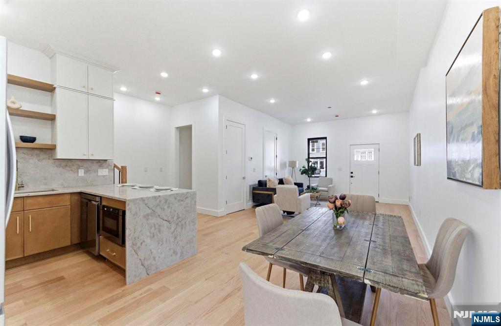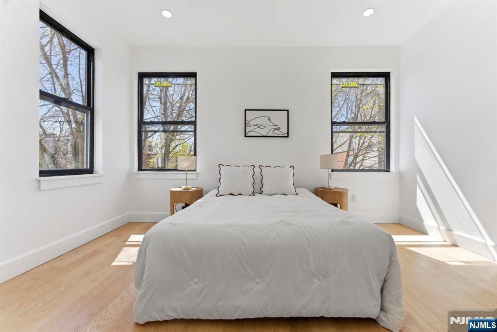 Welcome to 113 Oak Street, a truly one-of-a-kind multi-family residence in the heart of Bergen-Lafayette offering a rare blend of space, design, and income potential unlike anything else on the market. Situated on a 25x100 lot, this exceptional property features 2 expansive units with a combined 7 bedrooms and 6 bathrooms, thoughtfully designed for modern living and maximum flexibility. The first unit is a sun-drenched 3-level triplex offering 4 bedrooms and 4 full baths, highlighted by a 10ft ceiling finished basement with private entry, kitchen, and bathroom; ideal for extended living, guest suite, or additional income potential. Bedrooms are thoughtfully distributed across all levels, creating a seamless and functional layout. The second unit offers a beautifully designed 2-level residence with 3 bedrooms, 2 bathrooms, and a private roof deck with NYC skyline views, blending charm, natural light, and contemporary finishes. Throughout the home, enjoy abundant natural sunlight, high ceilings, and a layout that provides true versatility for both end-users and investors. Adding even more value, the property includes plans for a rear ADU / carriage house, presenting a rare opportunity for future expansion and increased income. Perfectly located just steps to the Light Rail, this is a true commuter’s dream with quick access to NYC, while being surrounded by parks, dining, and the continued growth of Bergen-Lafayette.