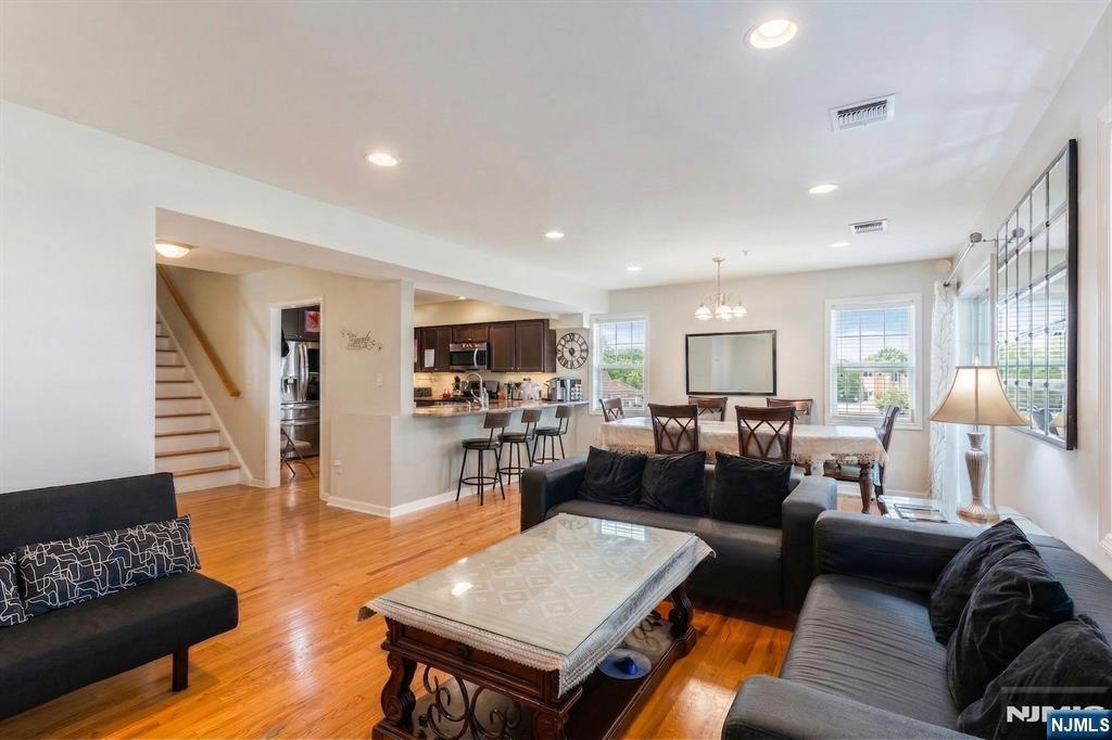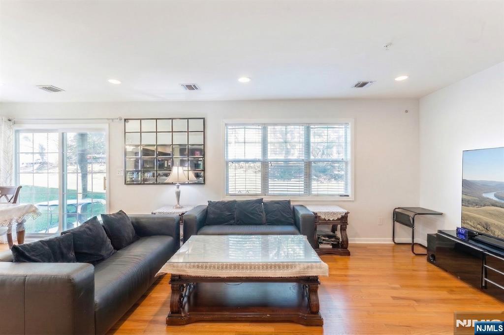 Welcome to this spacious and well-maintained townhouse in the desirable Garret Mountain Estates community! This beautifully designed 3-bedroom, 3-bathroom home offers over 2,200 sq ft of comfortable living space with a functional, open-concept layout. The main level features gleaming hardwood floors, a bright and airy living room, and a formal dining area with sliding glass doors leading to a private deck perfect for entertaining or relaxing. The modern kitchen is equipped with stainless steel appliances, ample cabinetry, and generous counter space, seamlessly flowing into the main living areas. Upstairs, you'll find generously sized bedrooms, including a large primary suite with abundant natural light and ample closet space. The home also includes multiple full bathrooms, offering convenience and flexibility. Additional highlights include a one-car garage, in-unit laundry, and central air. Enjoy outdoor living with patio/deck areas and beautifully maintained community grounds. Conveniently located near major highways, public transportation, shopping, dining, and parks, this home offers the perfect blend of suburban comfort and commuter accessibility. Don't miss this opportunity to own in one of Paterson's most sought-after townhouse communities!
