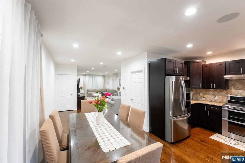 Come see this beautiful well-maintained Single-Family Colonial style with an open first-floor layout. Spacious living and dining room with gleaming hardwood floors. Updated kitchen with stainless steel appliances, granite countertops, powder room, and laundry area. The second floor offers an oversized primary bedroom with walk-in closet and private balcony, plus a spacious second bedroom and full bath. The renovated third floor includes a bright additional bedroom, and bonus office space with high ceilings. Finished lower level with marble floors and half bath. Sliding doors lead to a deck and private backyard perfect for relaxing or entertaining. Meticulously maintained and ready to move in.