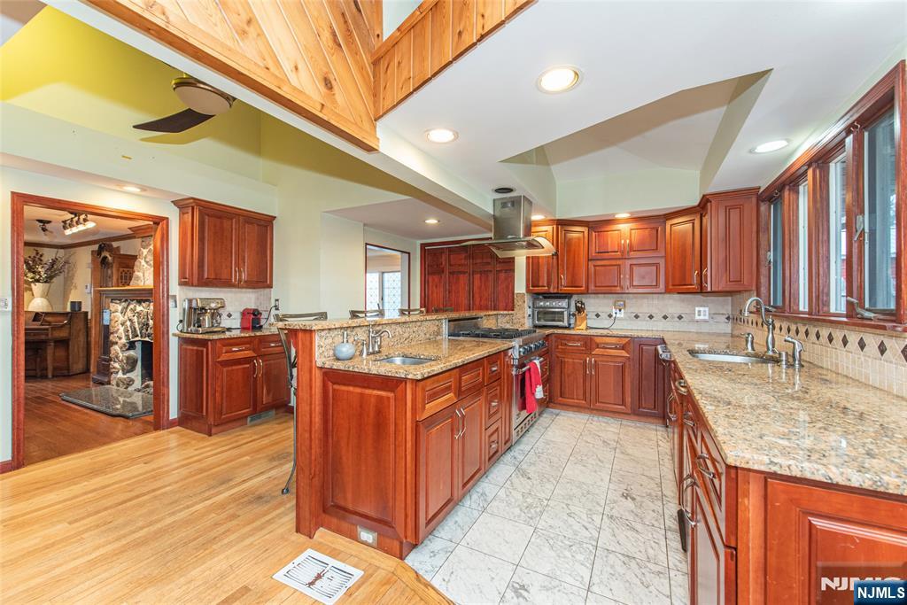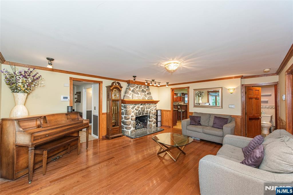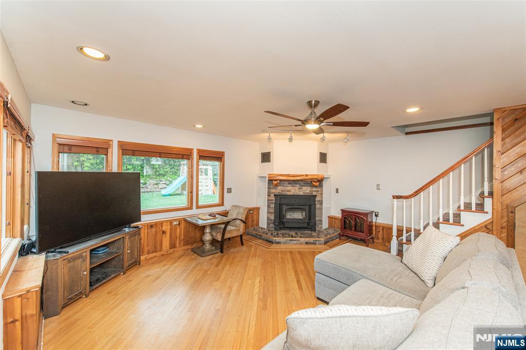 Beautiful Packanack Lake home featuring a desirable split floor plan. The updated cherry kitchen offers an abundance of cabinetry, two sinks, and a premium Viking stove perfect for everyday living and entertaining. The expanded family room bump-out includes a fireplace with insert, providing additional living space and comfort. The formal living room showcases a stunning stone fireplace and flows seamlessly into the formal dining room. Step outside to a paver patio with a grape-covered pergola, creating a charming and private outdoor retreat. Enjoy a level yard ideal for gatherings. Located in sought-after Packanack Lake, offering year-round activities including lake access, beaches, boating, tennis, clubhouse, and a great new restaurant. Packanack Lake dues vary based on # of occupants: $482.50-922.50 annually