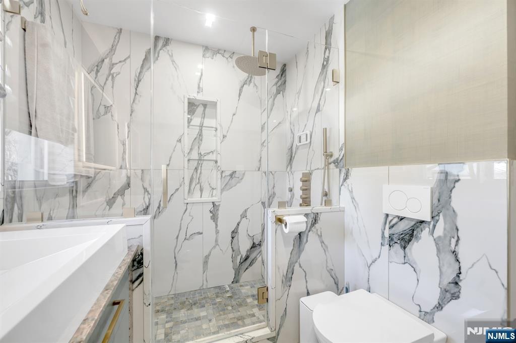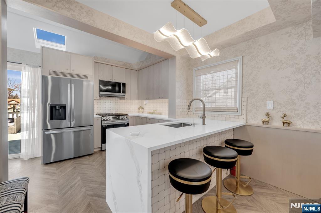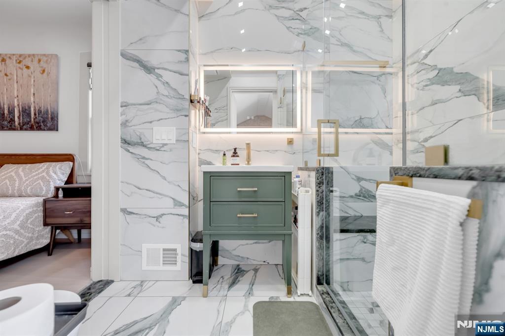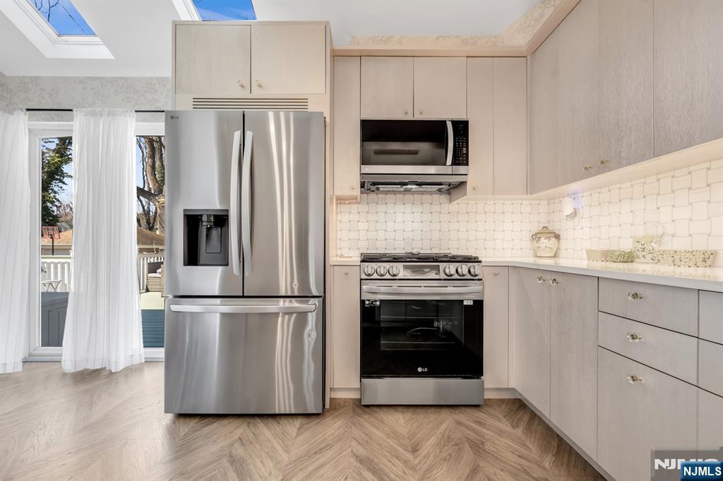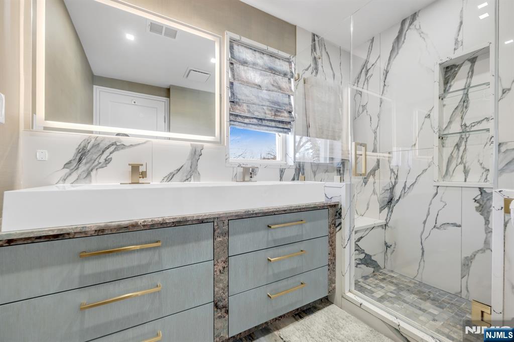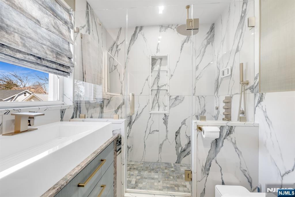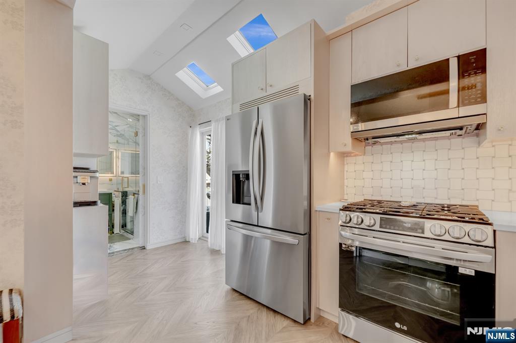 Stunning 4 bedroom, 3 full bathroom colonial set in a prime Teaneck location, completely reimagined with an exceptional level of design and craftsmanship. This home is truly a piece of art, thoughtfully redesigned from top to bottom with a level of detail rarely seen in today’s market. The contractor behind the transformation has been featured in publications such as Architectural Digest, a testament to the quality and vision throughout. The 1st, 2nd, and 3rd floors were fully gutted and rebuilt, incorporating high-end finishes, many of which were custom and imported, creating a one-of-a-kind living experience. The 1st floor offers a welcoming foyer with two custom closets, leading into an open concept living room & dining room. A private office / bonus room provides flexibility, along with a spacious bedroom and full bathroom. The kitchen is beautifully updated with quartz countertops and a breakfast bar. The 2nd level features 2 bedrooms, one with a custom WIC, & a beautifully finished full bath. The 3rd floor is fully finished and offers incredible versatility as an additional bedroom, recreation space, or retreat, plus ample storage. The property itself is equally impressive, offering a large lot, long driveway, detached 2 car garage, and a spacious deck overlooking a flat, grassy backyard. Finished basement with a summer kitchen, central air, so much more. Unlike anything else on the market, this home is the epitome of design significance and style.