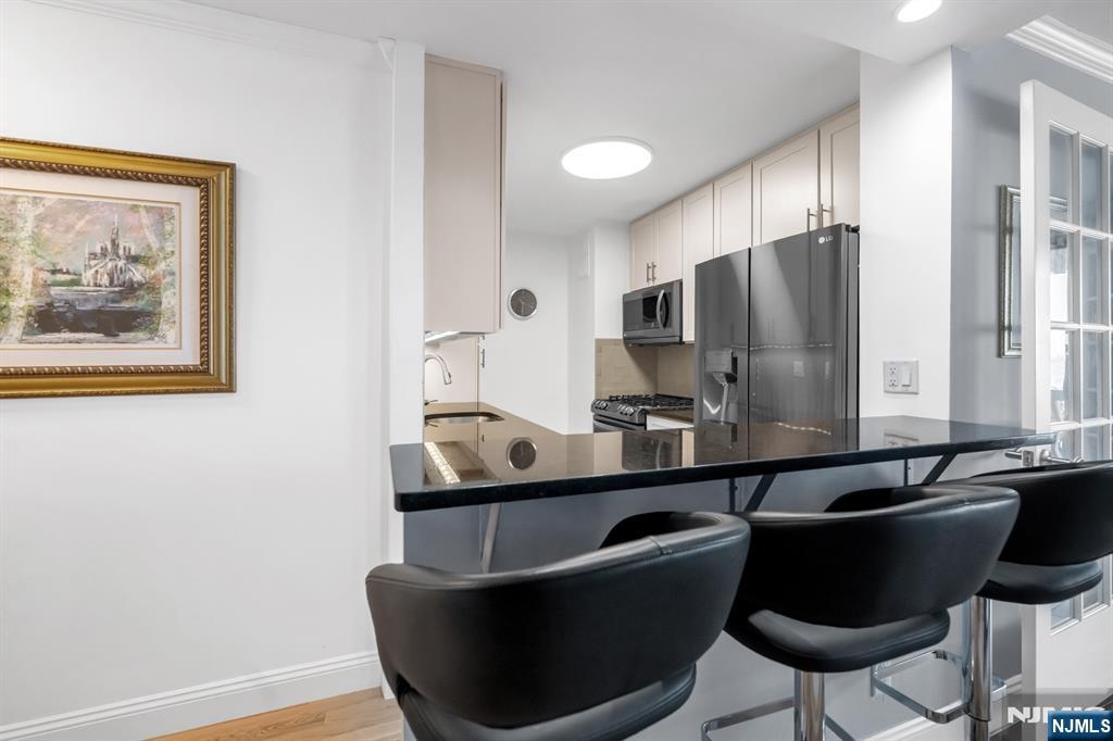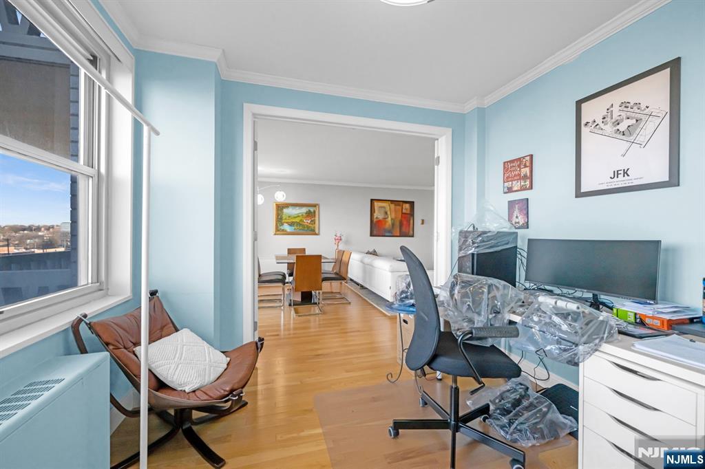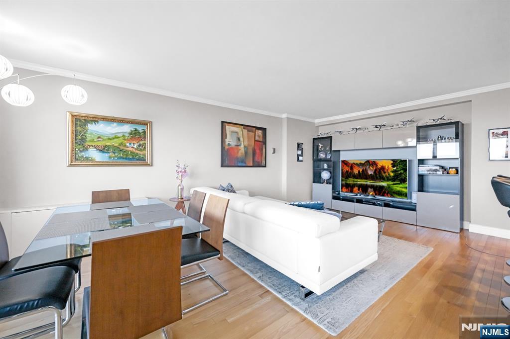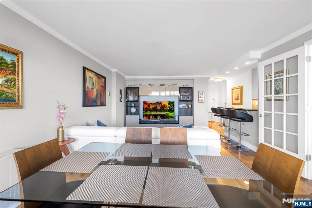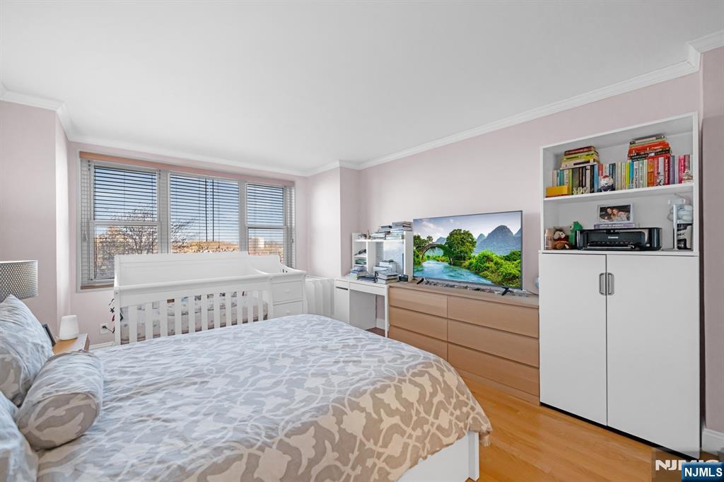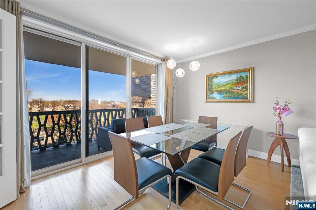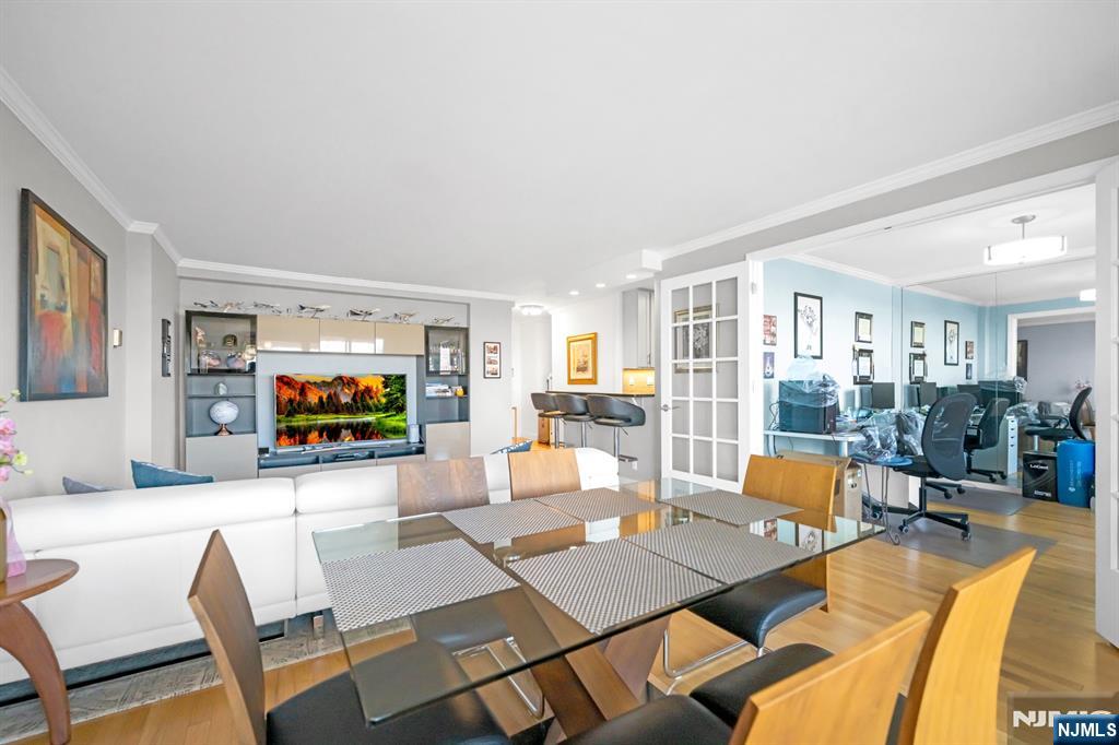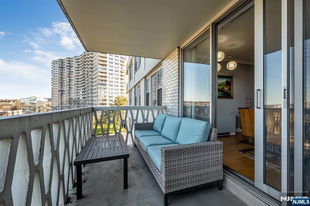 Spacious one bedroom, one bath deluxe at the Mediterranean South, ideally situated on a top floor overlooking the constitutional park. This unique open living and dining area offers great flow for entertaining and includes a separate dining space off the living room, ideal for a home office or den. Recently renovated kitchen and bathroom. This bright, sun-filled unit features a private terrace overlooking the park, a large primary bedroom, and exceptional storage with a large walk-in closet, an additional linen closet, and a hallway coat closet. Located in Med South, a full-service building with 24/7 doorman and security, on-floor laundry, community room, playground, and outdoor athletic courts. Optional amenities include a fitness center for $15/month. Unit includes one assigned parking space. Ideal for commuters with close proximity to NYC transportation, the GW Bridge, and major highways, plus easy access to shopping, dining, parks, and more.