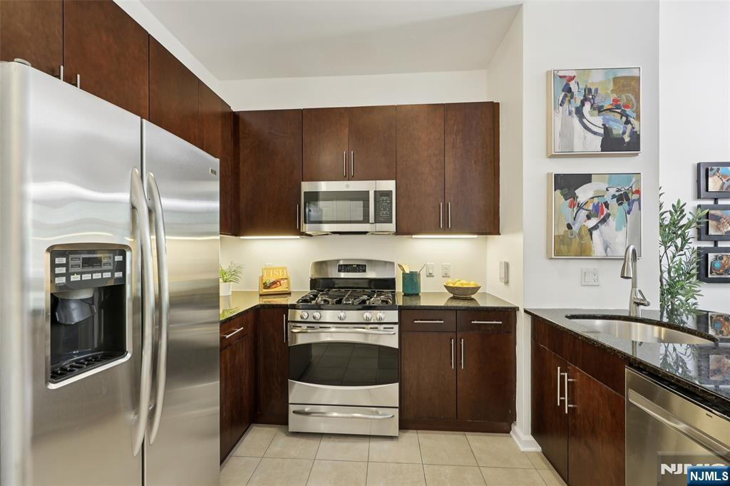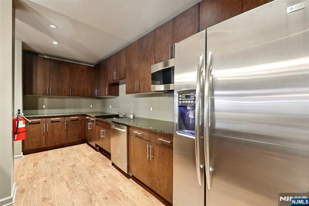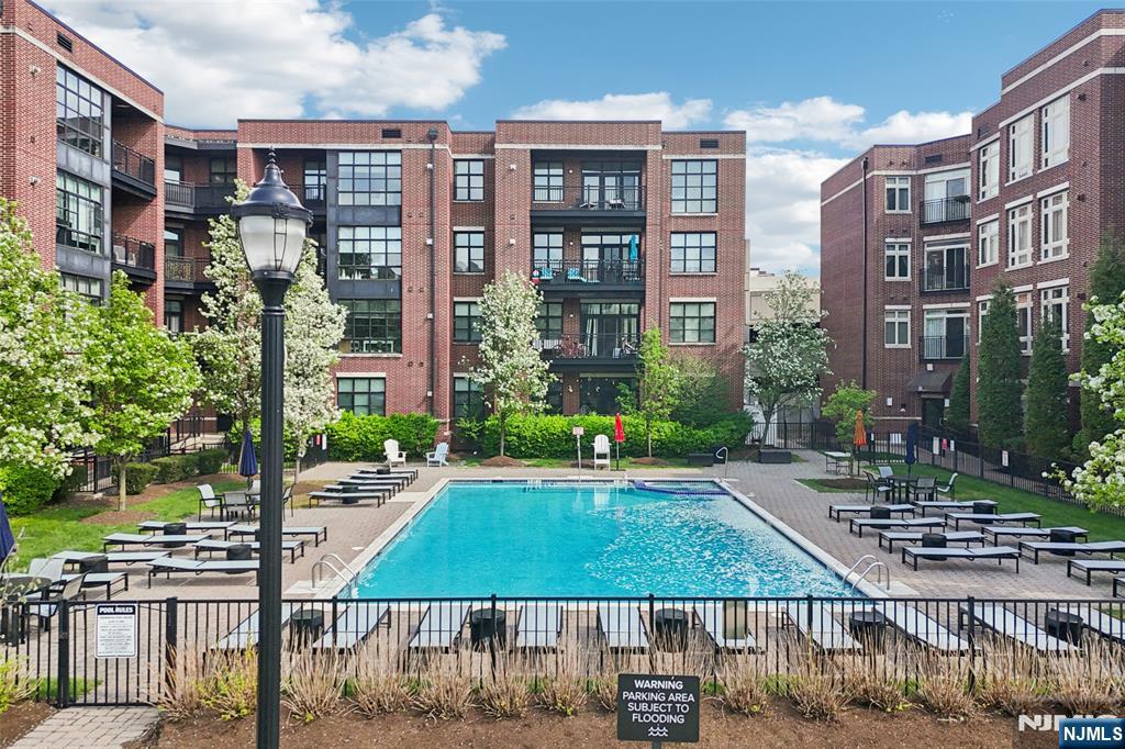 Perfectly maintained and truly move-in ready, this 1-bedroom, 1-bath residence at The M at Englewood South offers thoughtfully designed living space. The open-concept layout is enhanced by recessed lighting, expansive windows, and a seamless flow that creates both comfort and functionality. The modern kitchen is appointed with granite countertops, stainless steel appliances, and a breakfast bar that opens into the spacious living and dining areas, perfect for everyday living and entertaining. The bedroom features a generous walk-in closet and a private en-suite bathroom. Additional highlights include plenty of closet space for all storage needs and an in-unit washer/dryer, offering both convenience and practicality and convenience of the community room right next door! Residents enjoy an outdoor pool and clubhouse, enhancing the lifestyle experience. Ideally located just minutes from Downtown Englewood, you’re surrounded by fine dining, shopping, parks, and have easy access to the George Washington Bridge for a seamless commute.