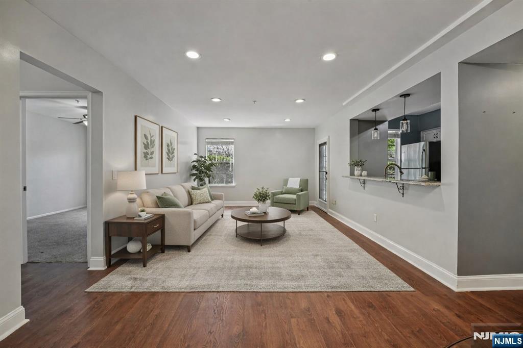 Welcome home to this beautifully maintained first-floor, 2-bedroom, 2-bathroom Condo located in the highly desirable Crescent Court community. Step into the entry foyer, which opens into a bright and inviting living space filled with natural light from a large window. The living room offers a comfortable setting for both everyday living and effortless entertaining, with direct access to a private balcony perfect for outdoor dining, morning coffee, or relaxing with a good book. The living room flows seamlessly into the dining area, creating an ideal space for intimate meals or hosting gatherings. A large cased opening leads into the tastefully updated kitchen, featuring custom cabinetry, granite countertops, stainless steel appliances, and a convenient pantry. The spacious primary bedroom serves as a private retreat, complete with a walk-in closet and en suite bath. A second generously sized bedroom also features a walk-in closet, offering excellent storage and flexibility. Additional highlights include a second bathroom, in-unit laundry and utility room, a dedicated garage storage locker, along with ample guest parking. Enjoy the lifestyle Crescent Court has to offer, with pet-friendly green spaces, peaceful wooded walking trails, and a community room for hosting events. Conveniently located near NYC transportation, shopping, and dining, this home offers the perfect blend of comfort, convenience, and low-maintenance living.