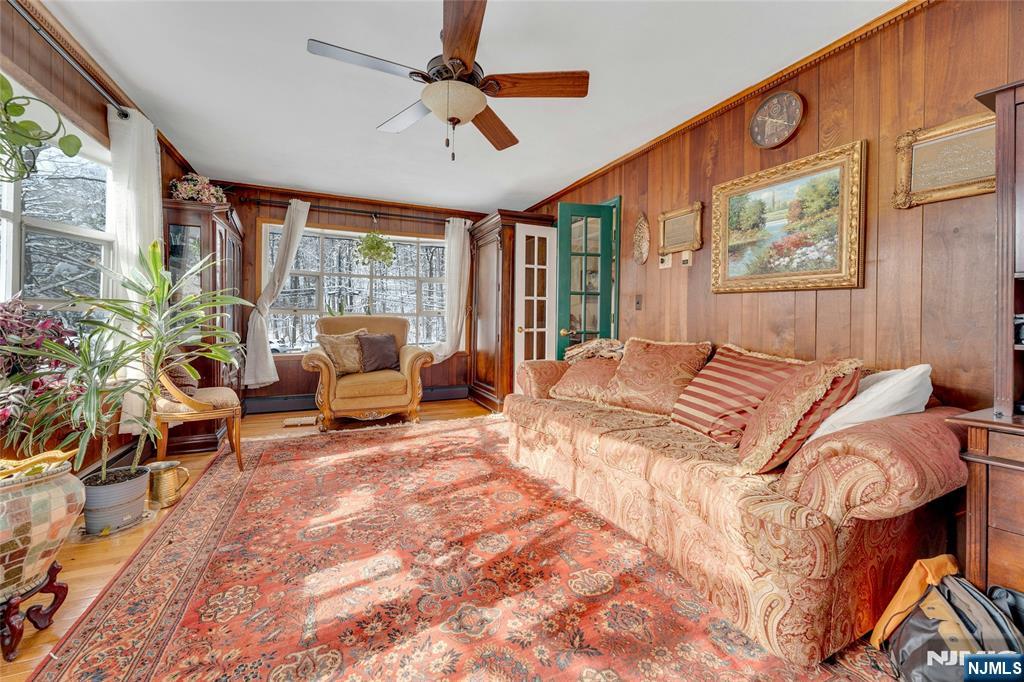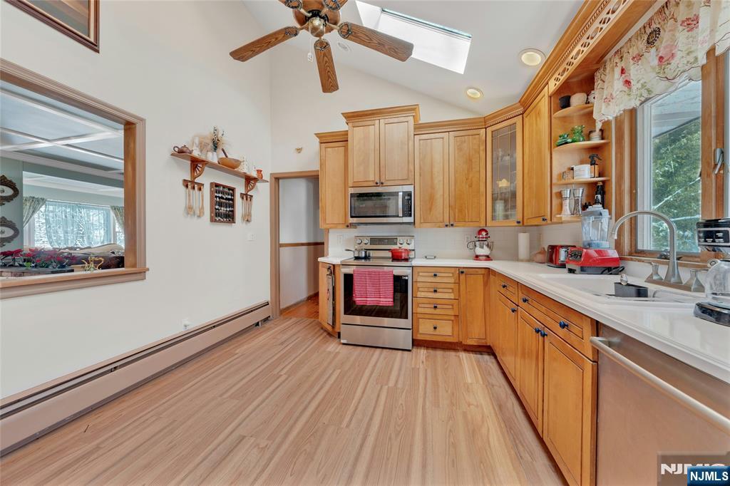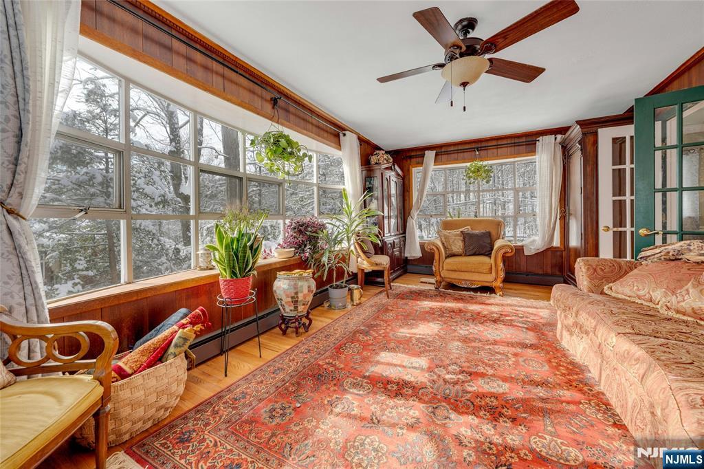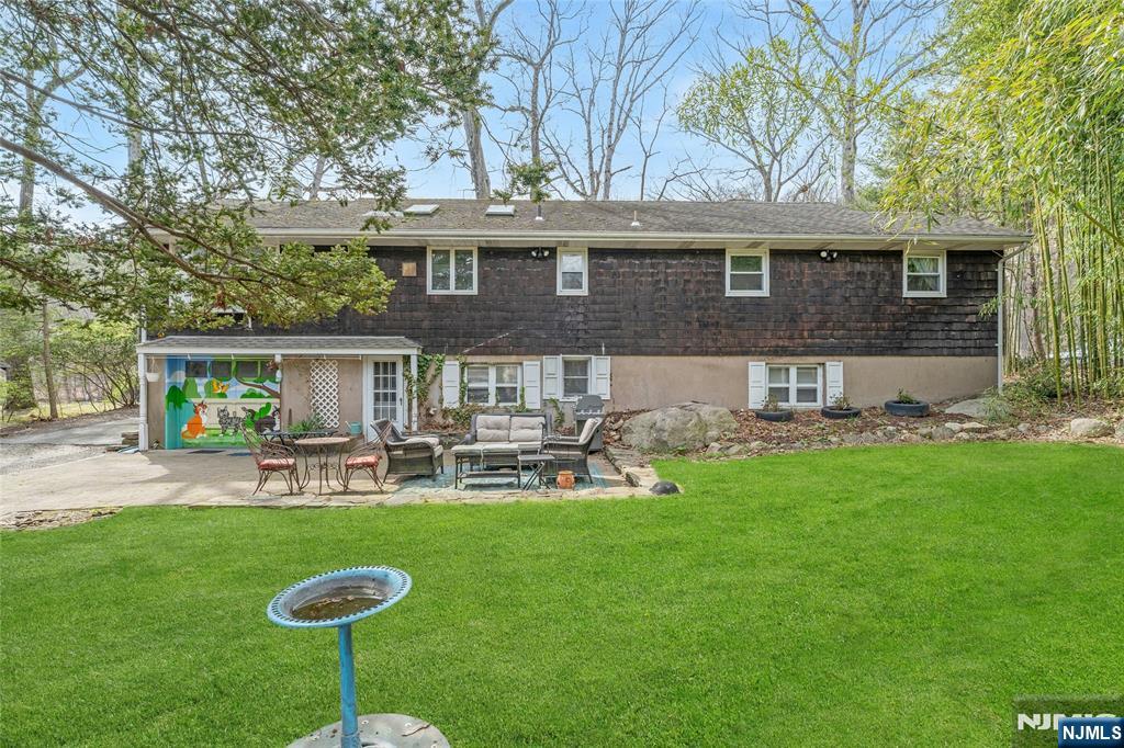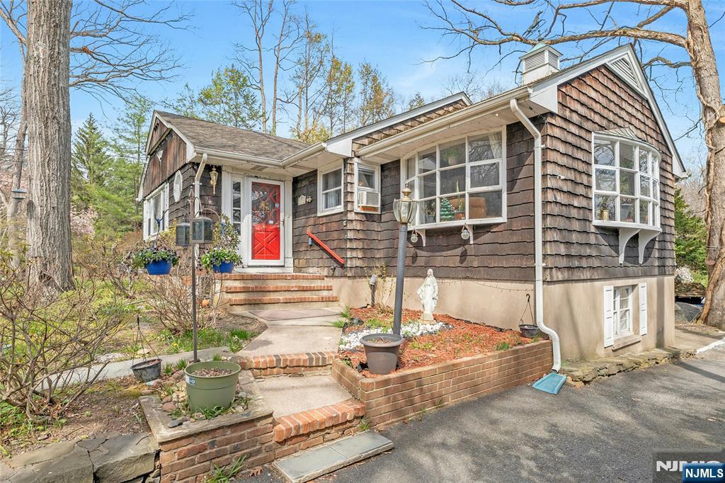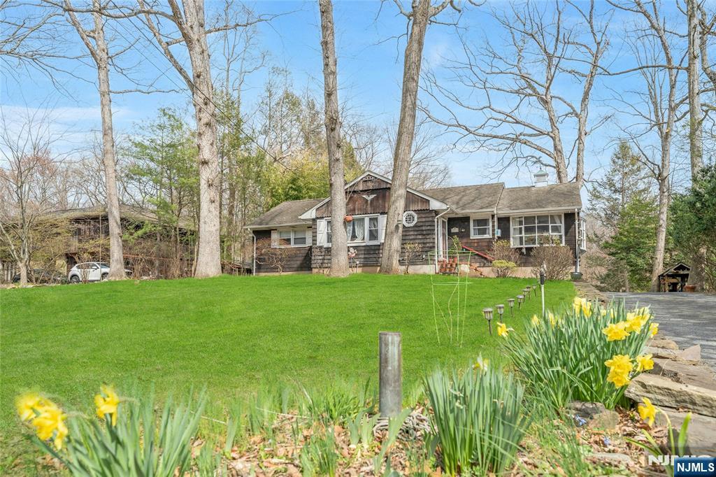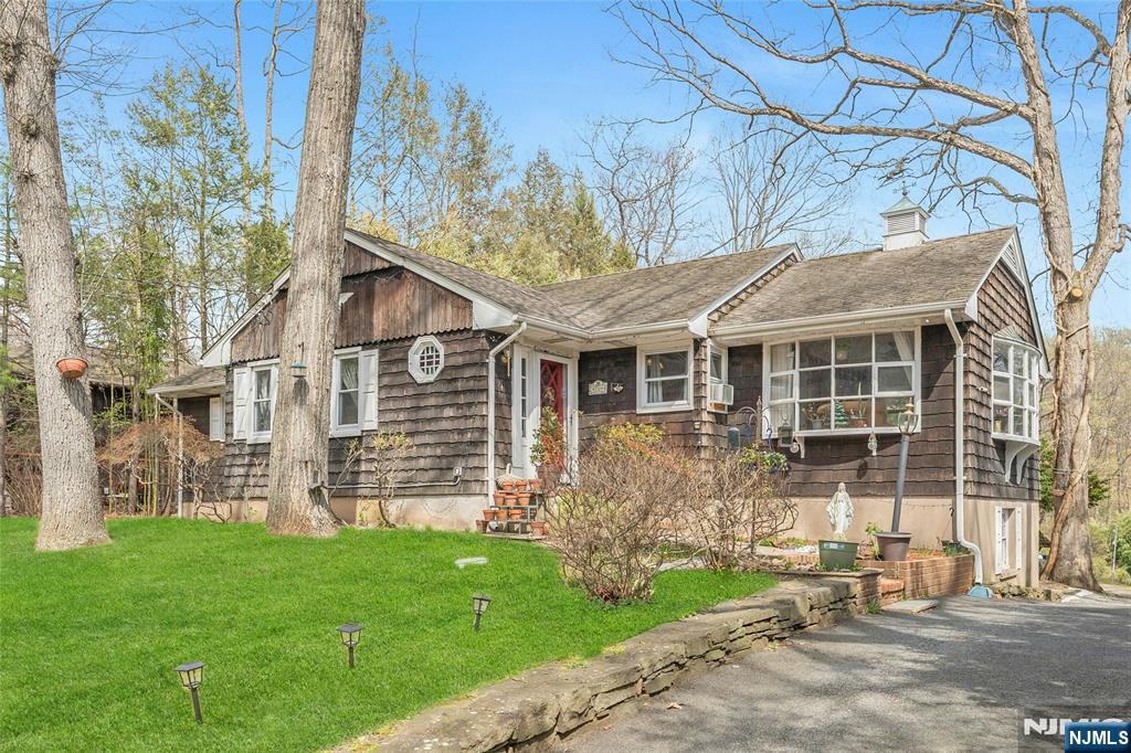 Nestled on an extremely large, private parcel within a beautiful wooded setting, this expansive ranch home offers the ultimate sanctuary. Positioned directly across from the Ramapo Mountain Reservation State Forest. This is a rare opportunity for outdoor enthusiasts to live where they love to play, all while enjoying easy access to major highways. Step inside to discover a warm and inviting main level bathed in natural light from skylights and highlighted by classic hardwood floors. The updated kitchen is equipped with stainless steel appliances and a pantry, flowing seamlessly into a separate dining area for effortless entertaining. Gather in the spacious living room, anchored by a cozy wood-burning fireplace, or retreat to the bright sunroom to soak in the serene, wooded views. The finished basement expands your living space, featuring a recreation room complete with a stylish wet bar (decorative sink) and a cast-iron wood-burning stove. This lower level also includes a full bathroom, a laundry room, an office or potential 4th bedroom and a utility room. Critical updates include above ground oil tank & 1000 gallon tank septic system installed in 2022 and brand new water softener filtration system installed in 2026. Don’t miss the chance to own this exceptional property where nature meets convenience. Listen to the sound of your own brook in the back yard and enjoy the fire pit for those cool evenings. Sold as it is. Motivated sellers and present all offers!