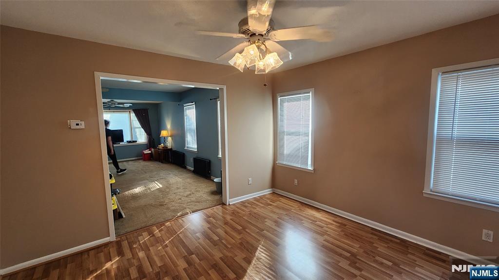 Well Kept 3 bdrms 1 bath 1 car detach garage in a desirable area of Teaneck, ready for the next buyers to make it their own. First walk up thru front porch enter to living room with added room to the front and back to Dining room and right to a well kept kitchen with separate eating area and to the spacious back deck. Second floor consist of 3 bedroom, bathroom with walk up attic hidden in the left front bedroom closet. spacious unfinish basement with washer and dryer, heating system, Toilet installed as is with potential for a full bath, HW under carpeting in most area. Home being sold as is condition without any known issue. Must see to appreciate